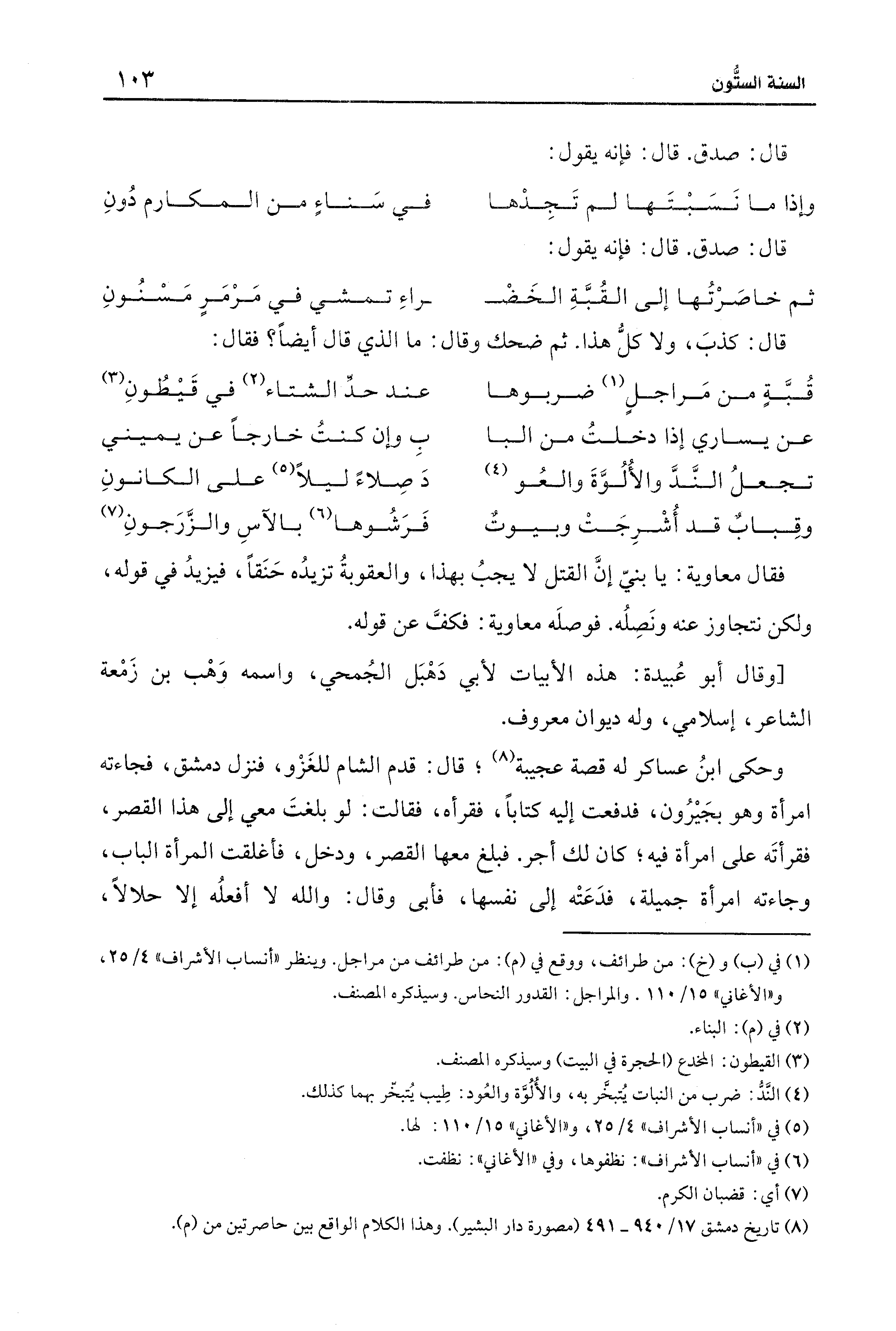 (¬1) في (ب) و (خ): من طرائف، ووقع في (م): من طرائف من مراجل. وينظر "أنساب الأشراف" 4/ 25، و"الأغاني" 15/ 110. والمراجل: القدور النحاس. وسيذكره المصنف.