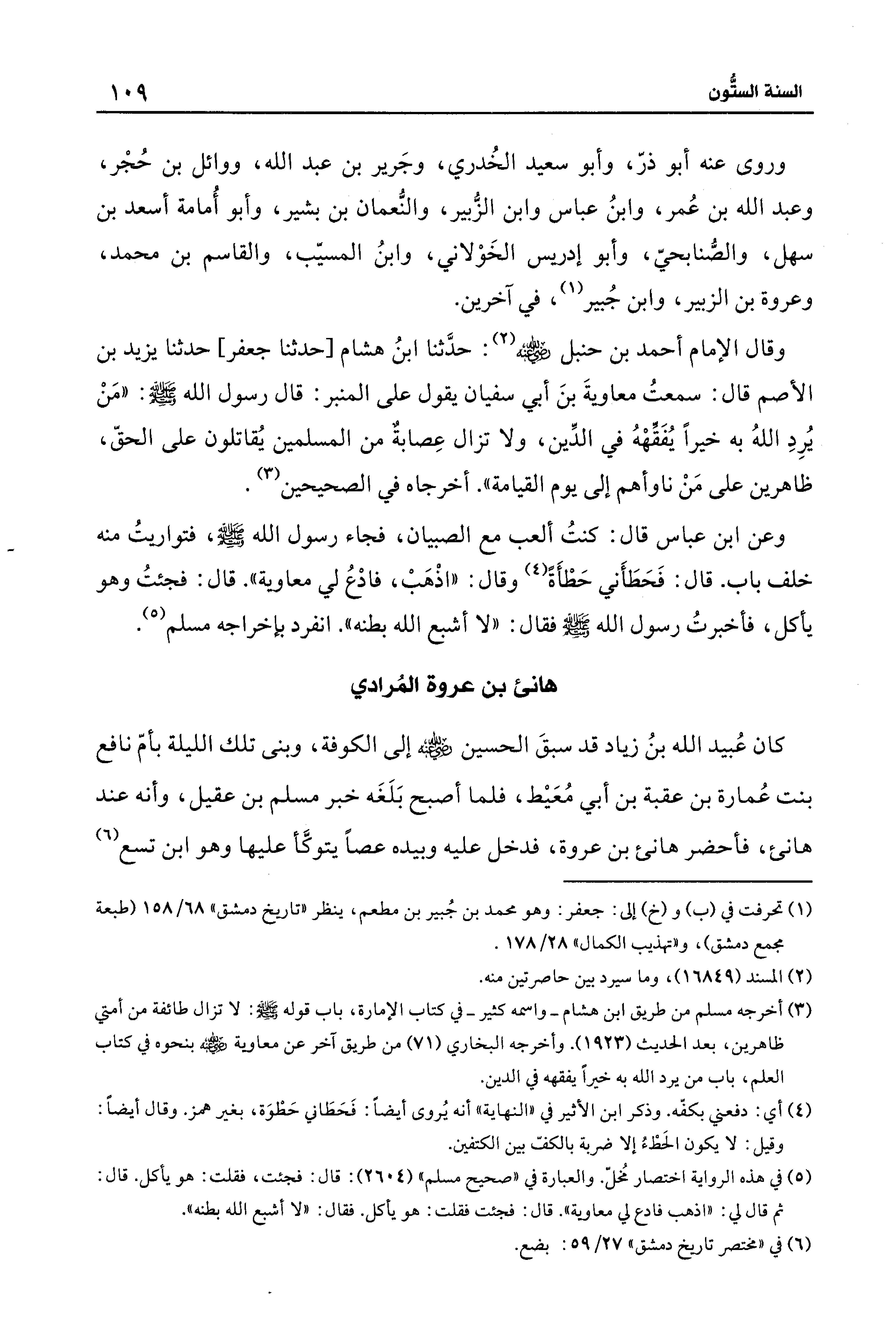 (¬3) أخرجه مسلم من طريق ابن هشام -واسمه كثير- في كتاب الإمارة، باب قوله - صلى الله عليه وسلم -: لا تزال طائفة من أمتي ظاهرين، بعد الحديث (1923). وأخرجه البخاري (71) من طريق آخر عن معاوية - رضي الله عنه - بنحوه في كتاب العلم، باب من يرد الله به خيرًا يفقهه في الدين.