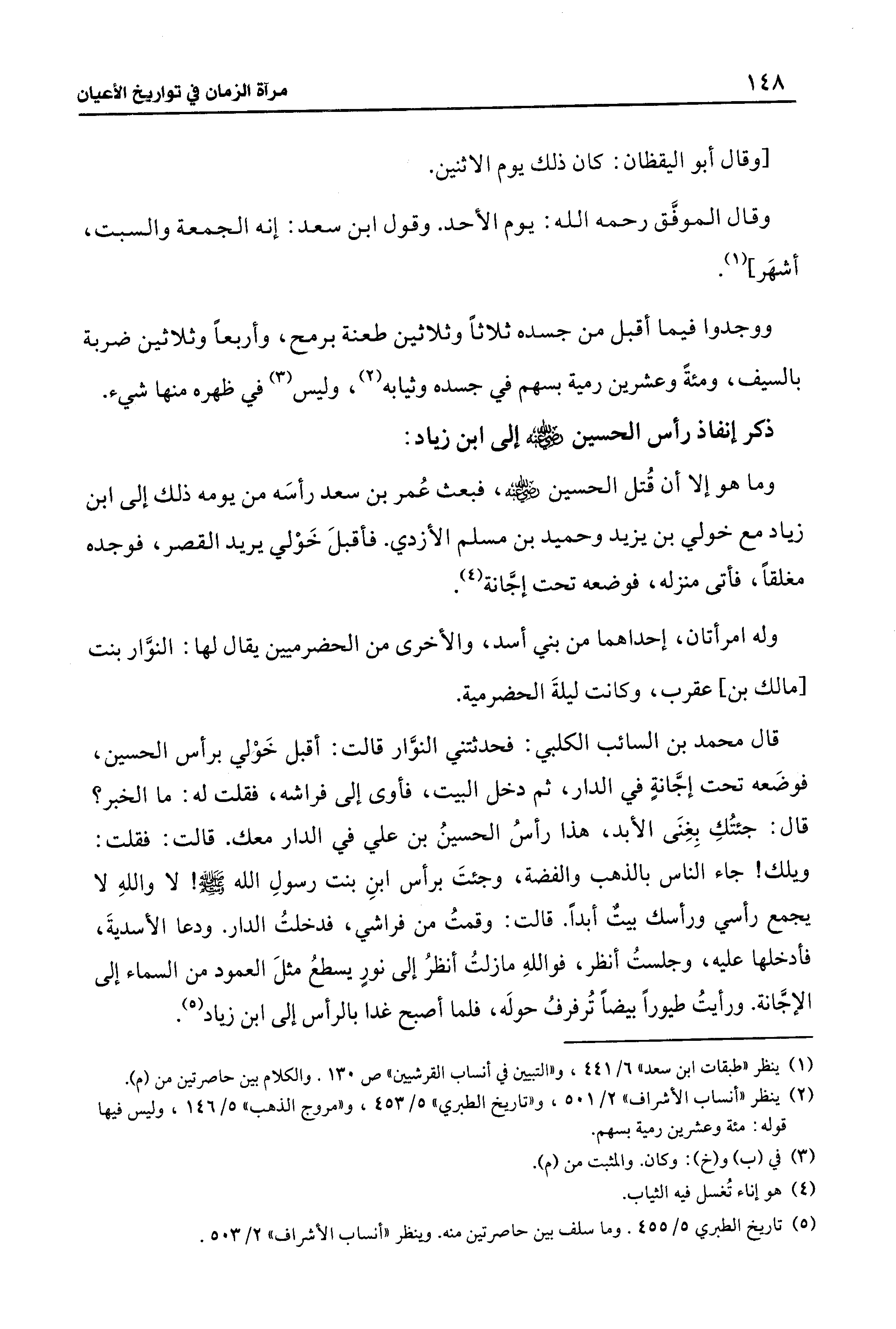 (¬2) ينظر "أنساب الأشراف" 2/ 501، و"تاريخ الطبري" 5/ 453، و"مروج الذهب" 5/ 146، وليس فيها قوله: مئة وعشرين رمية بسهم.
