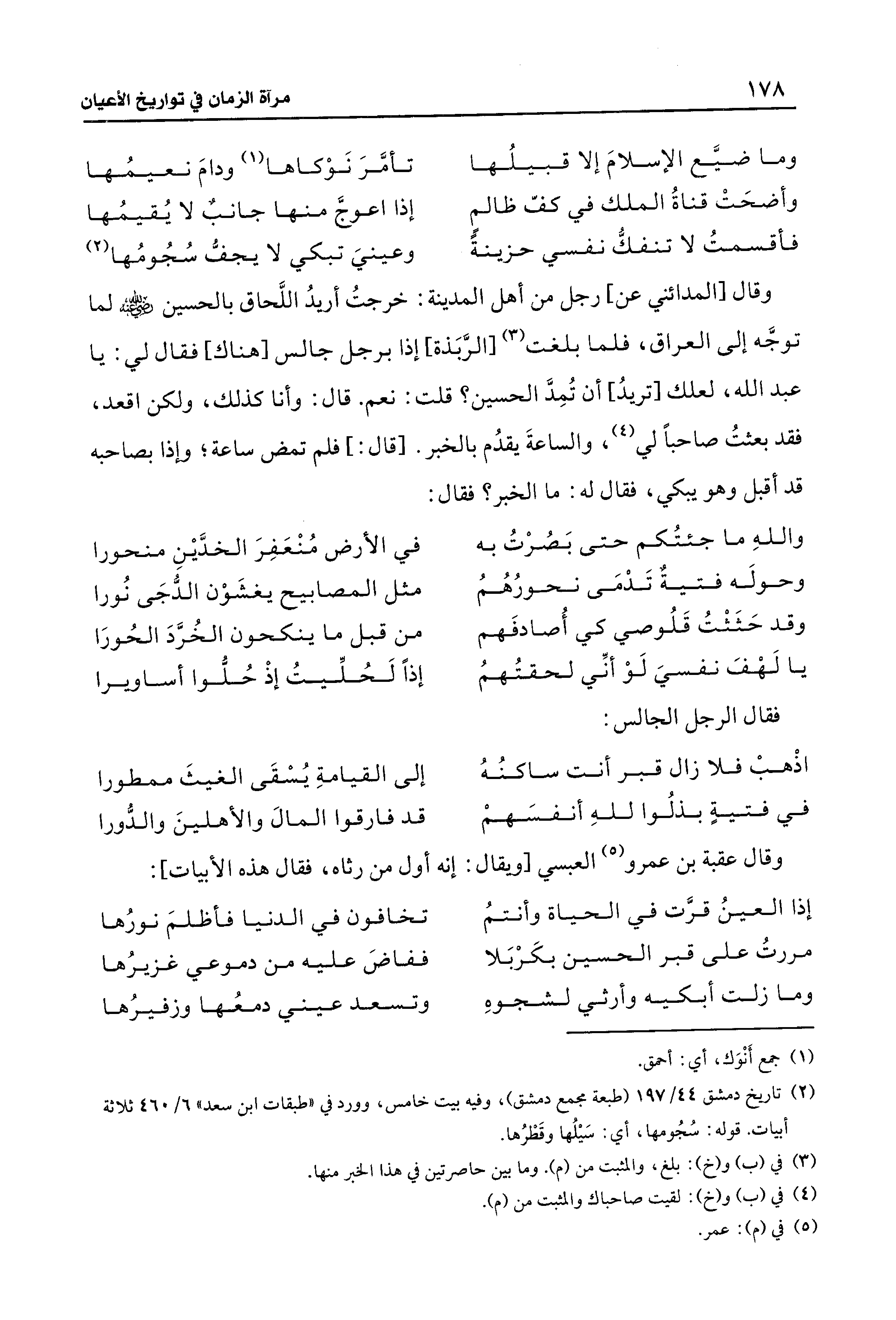 وقال [المدائني عن] رجل من أهل المدينة: خرجتُ أريدُ اللَّحاق بالحسين - رضي الله عنه - لما توجَّه إلى العراق، فلما بلغت (¬3) [الرَّبَذة] إذا برجل جالس [هناك] فقال لي: يا عبد الله، لعلك [تريدُ] أن تُمِدَّ الحسين؟ قلت: نعم. قال: وأنا كذلك، ولكن اقعد، فقد بعثتُ صاحبًا في (¬4)، والساعةَ يقدُم بالخبر. [قال: ] فلم تمض ساعة؛ وإذا بصاحبه قد أقبل وهو يبكي، فقال له: ما الخبر؟ فقال: