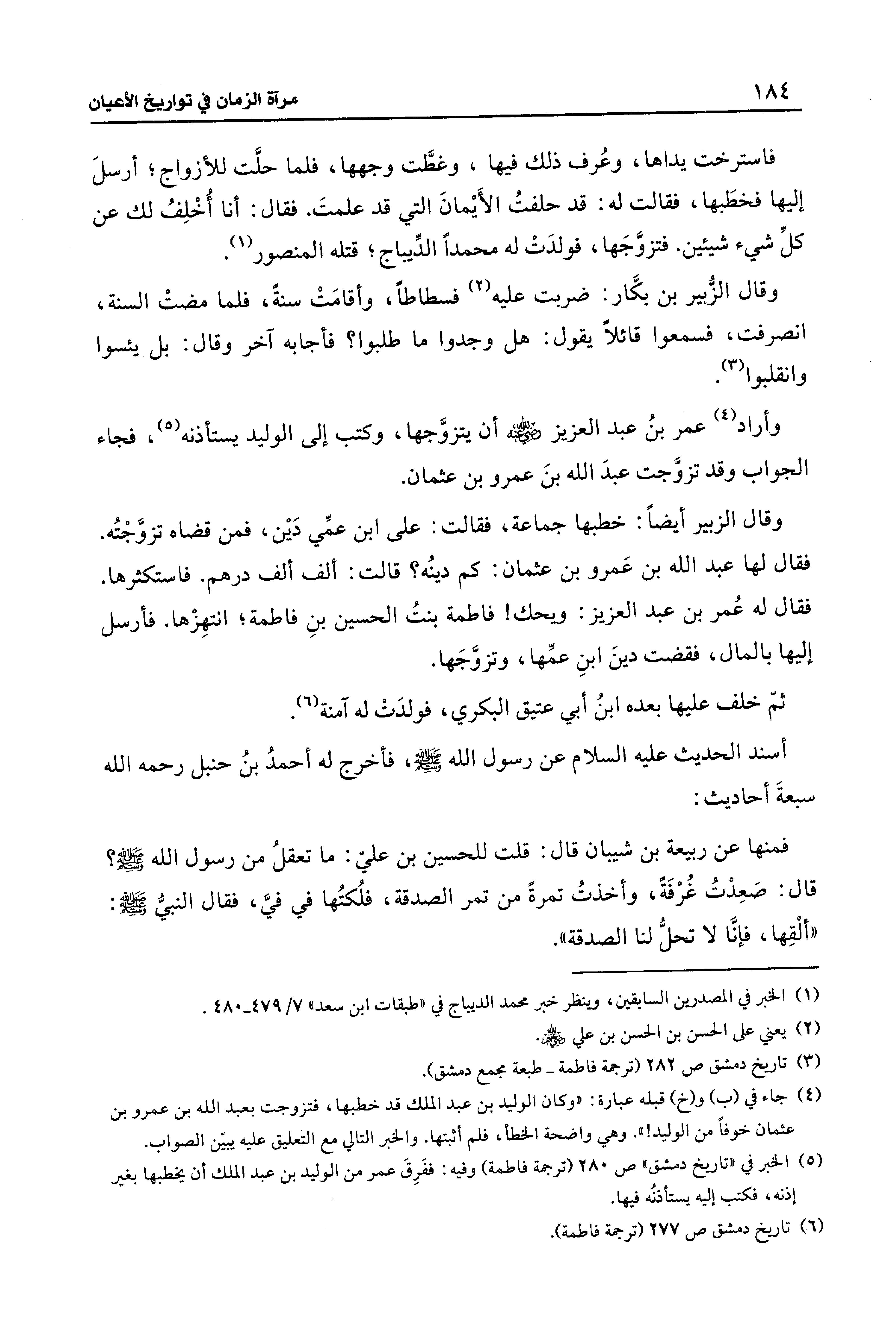 (¬6) تاريخ دمشق ص 277 (ترجمة فاطمة).