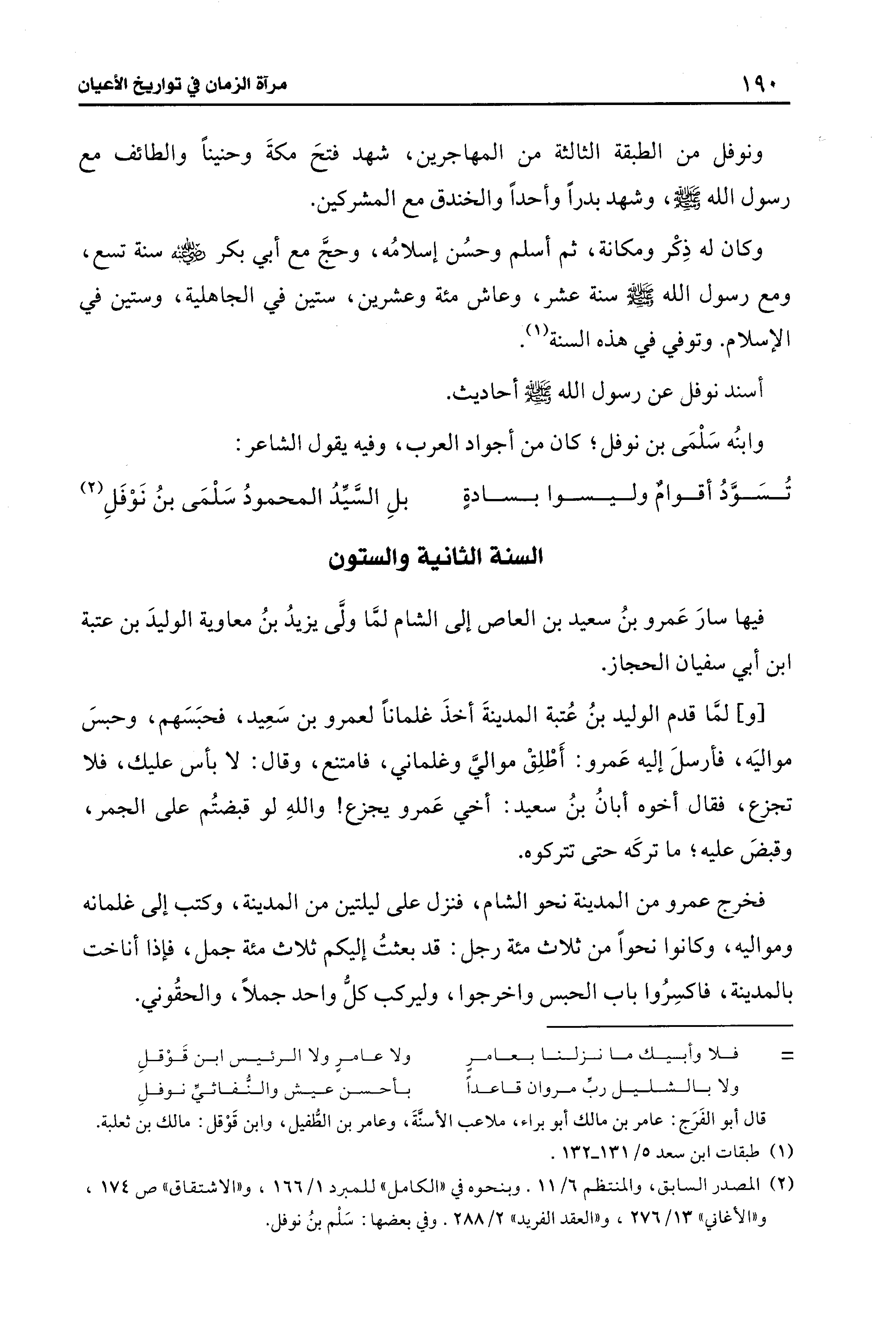 (¬2) المصدر السابق، والمنتظم 6/ 11. وبنحوه في "الكامل " للمبرد 1/ 111، و"الاشتقاق" ص 174، و"الأغاني" 13/ 276، و"العقد الفريد" 2/ 288. وفي بعضها: سَلْم بنُ نوفل.