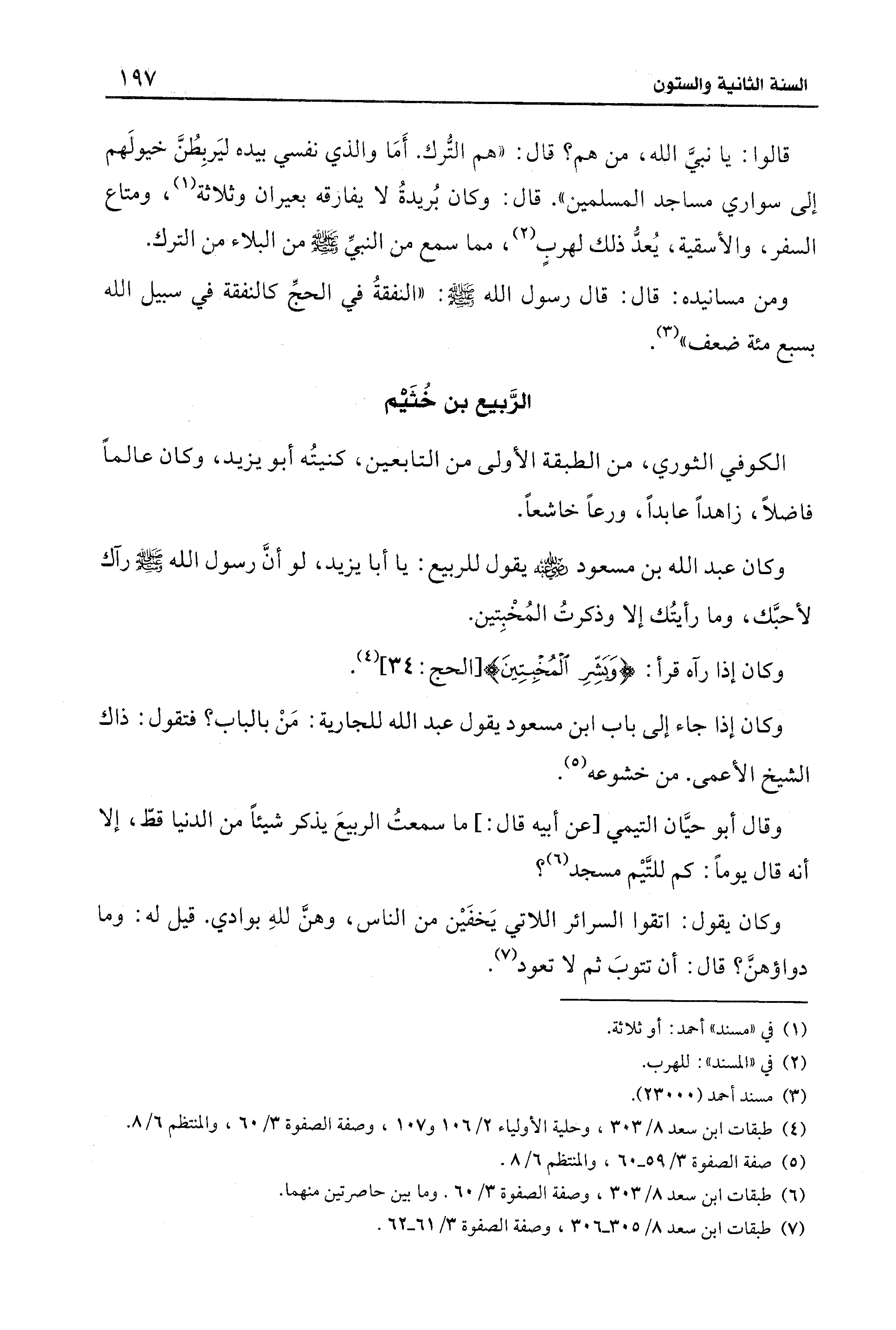 (¬7) طبقات ابن سعد 8/ 305 - 306، وصفة الصفوة 3/ 61 - 62.