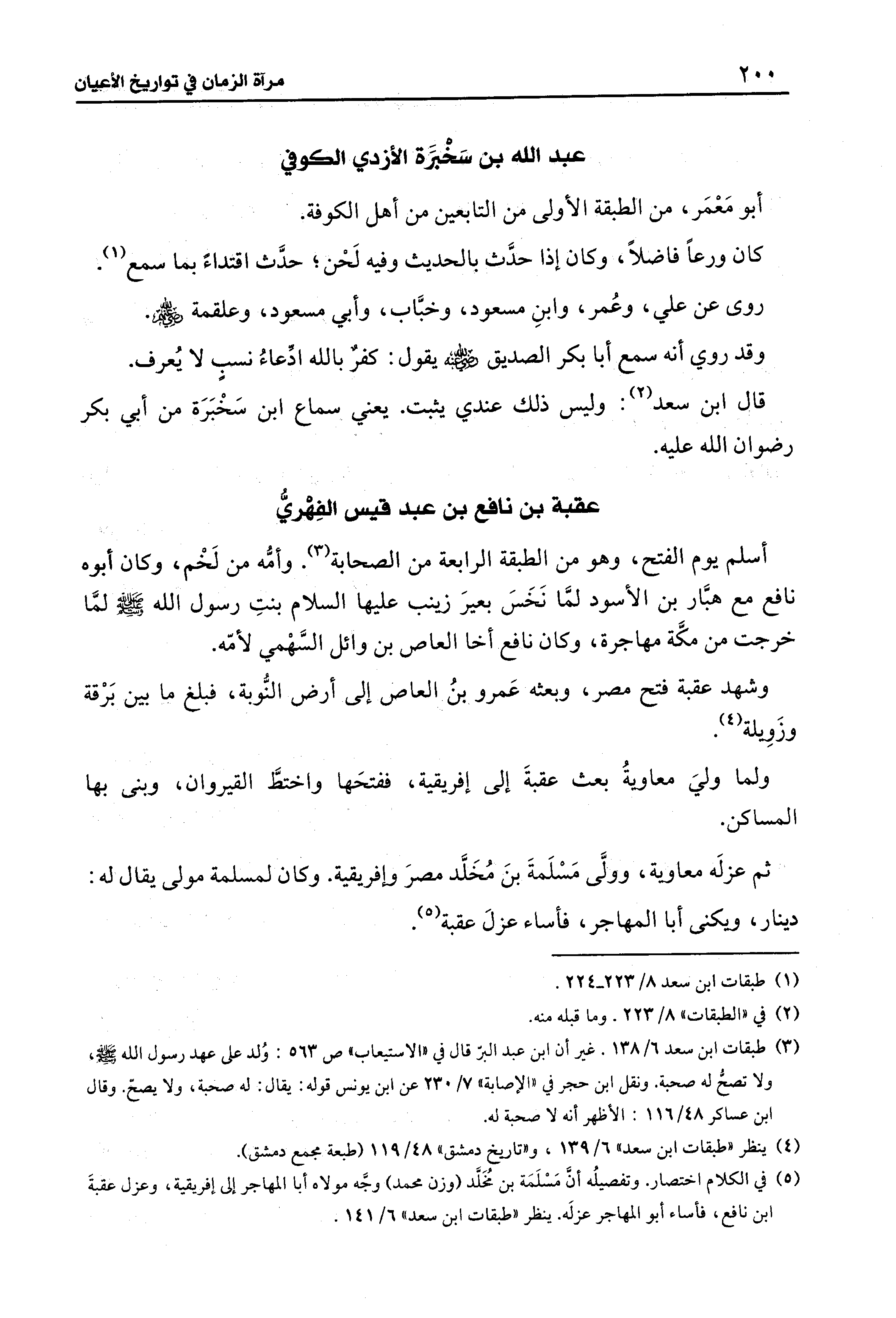 (¬3) طبقات ابن سعد 6/ 138. غير أن ابن عبد البر قال في "الاستيعاب" ص 563: وُلد على عهد رسول الله - صلى الله عليه وسلم -، ولا تصحُّ له صحبة. ونقل ابن حجر في "الإصابة" 7/ 230 عن ابن يونس قوله: يقال: له صحبة، ولا يصحّ. وقال ابن عساكر 48/ 116: الأظهر أنه لا صحبة له.