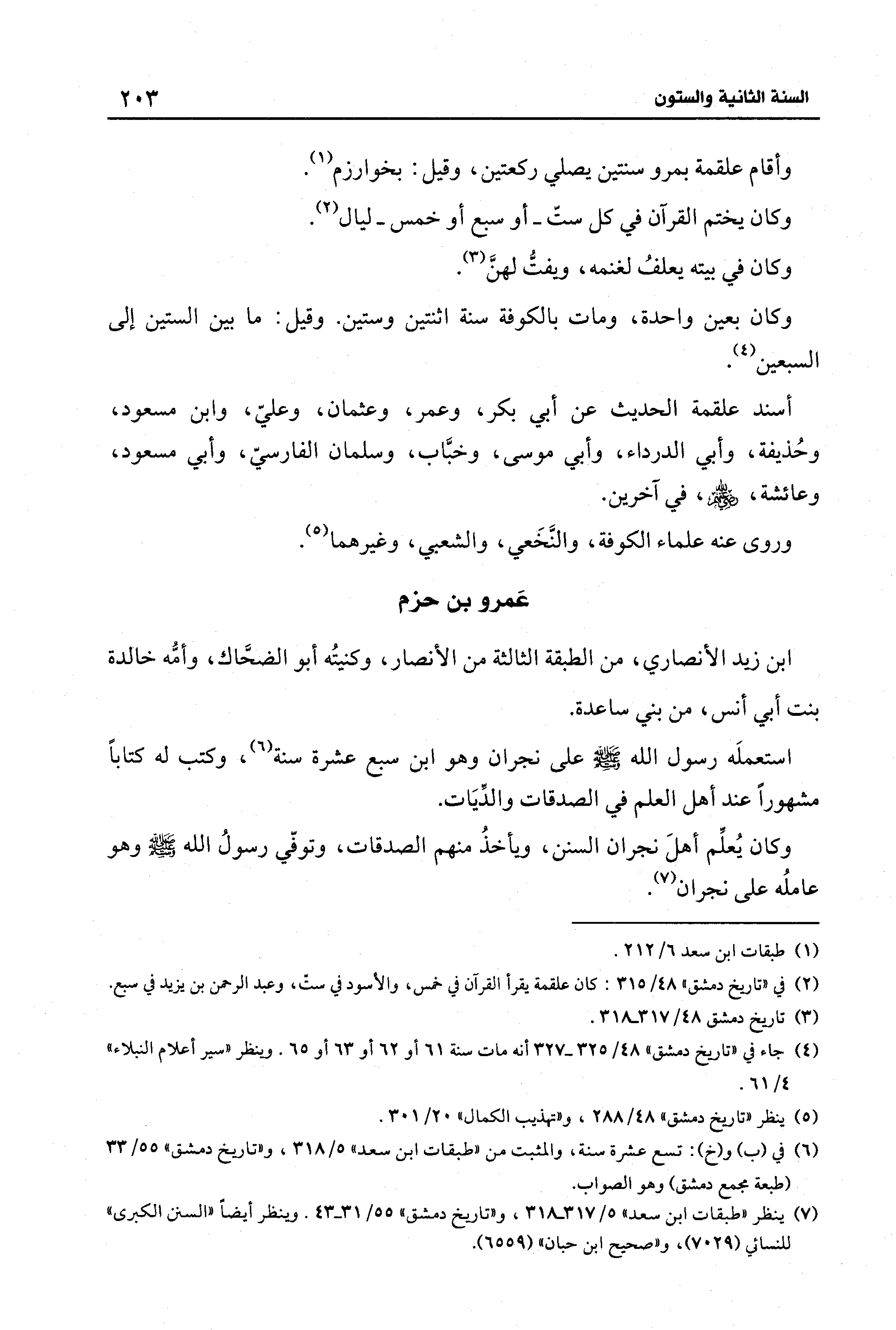 (¬7) ينظر "طبقات ابن سعد" 5/ 317 - 318، و"تاريخ دمشق" 55/ 31 - 43. وينظر أيضًا "السنن الكبرى" للنسائي (7029)، و"صحيح ابن حبان" (6559).