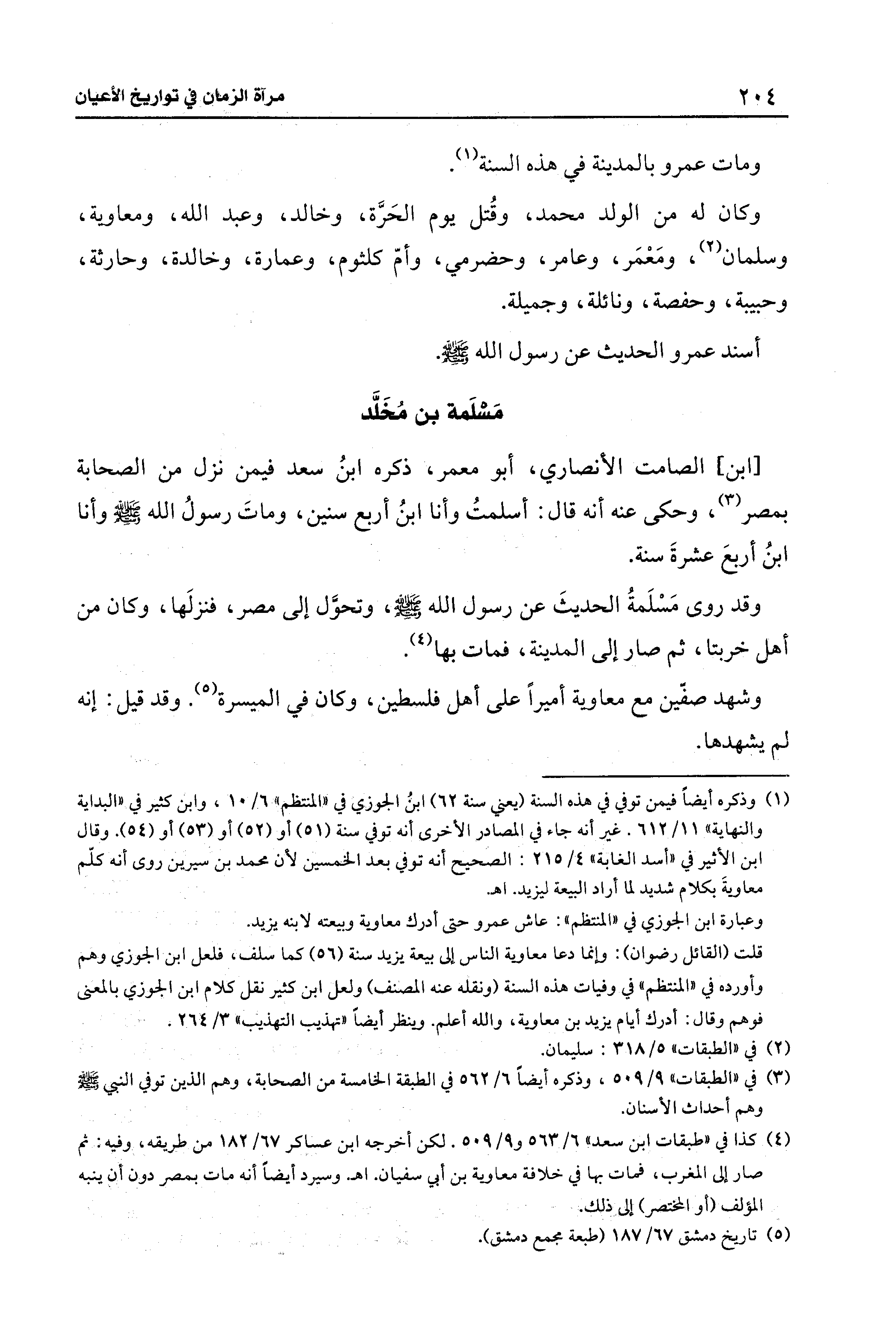 (¬4) كذا في "طبقات ابن سعد" 6/ 563 و 9/ 509. لكن أخرجه ابن عساكر 67/ 182 من طريقه، وفيه: ثم صار إلى المغرب، فمات بها في خلافة معاوية بن أبي سفيان. اهـ. وسيرد أيضًا أنه مات بمصر دون أن ينبه المؤلف (أو المختصر) إلى ذلك.