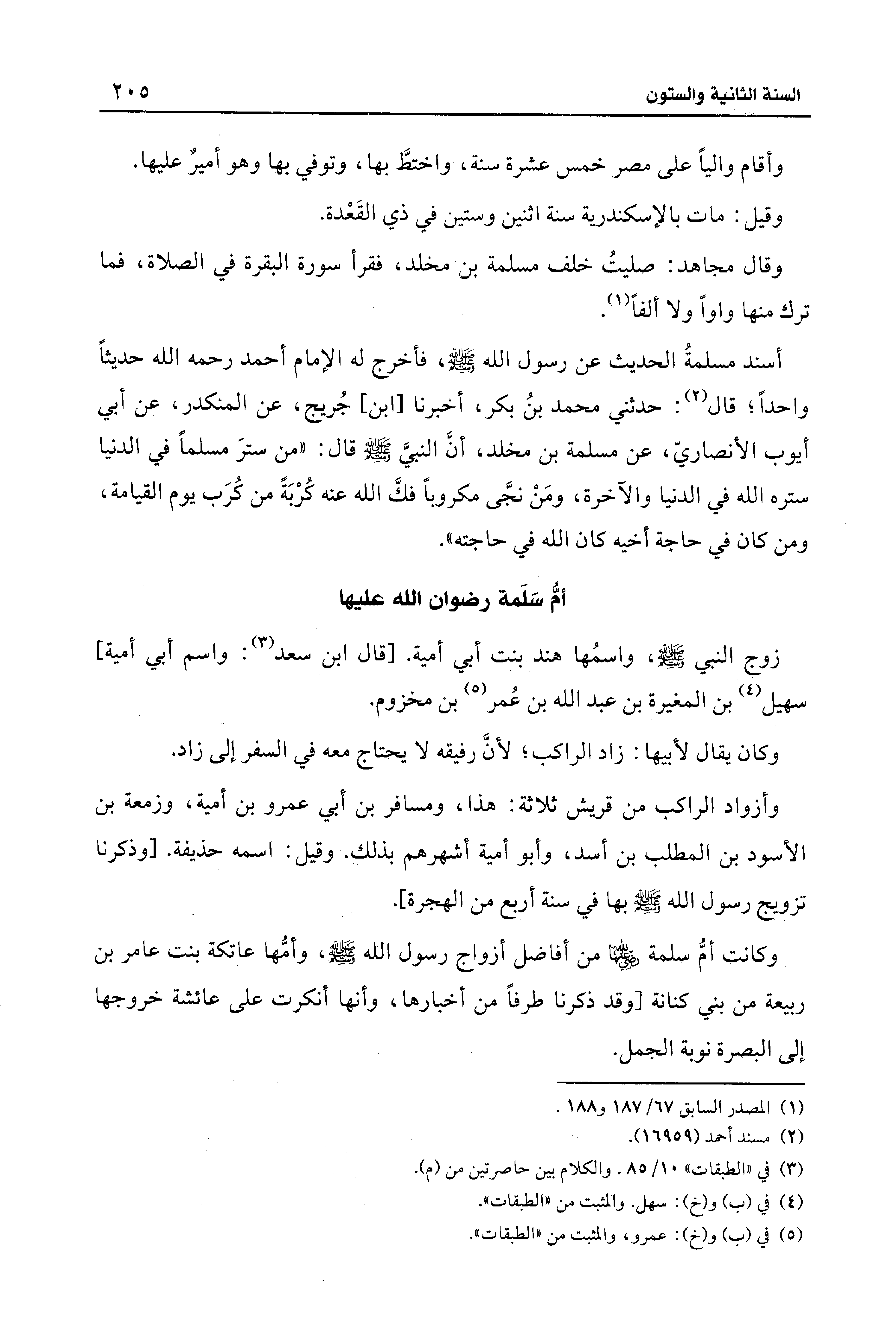 وكانت أمُّ سلمة - رضي الله عنها - من أفاضل أزواج رسول الله - صلى الله عليه وسلم -، وأمُّها عاتكة بنت عامر بن ربيعة من بني كنانة [وقد ذكرنا طرفًا من أخبارها، وأنها أنكرت على عائشة خروجها إلى البصرة نوبة الجمل.