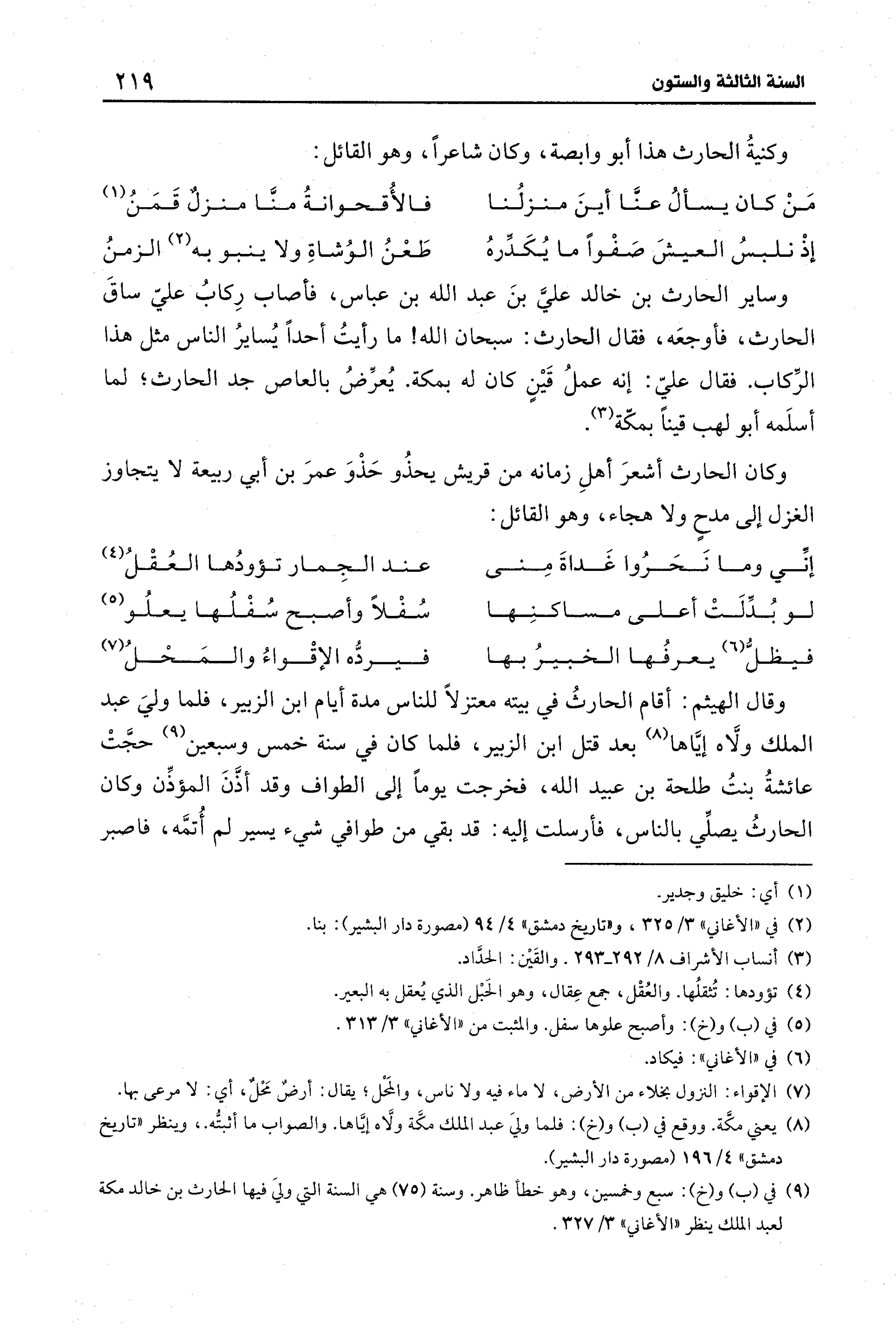 (¬9) في (ب) و (خ): سبع وخمسين، وهو خطأ ظاهر. وسنة (75) هي السنة التي وليَ فيها الحارث بن خالد مكة لعبد الملك ينظر "الأغاني" 3/ 327.