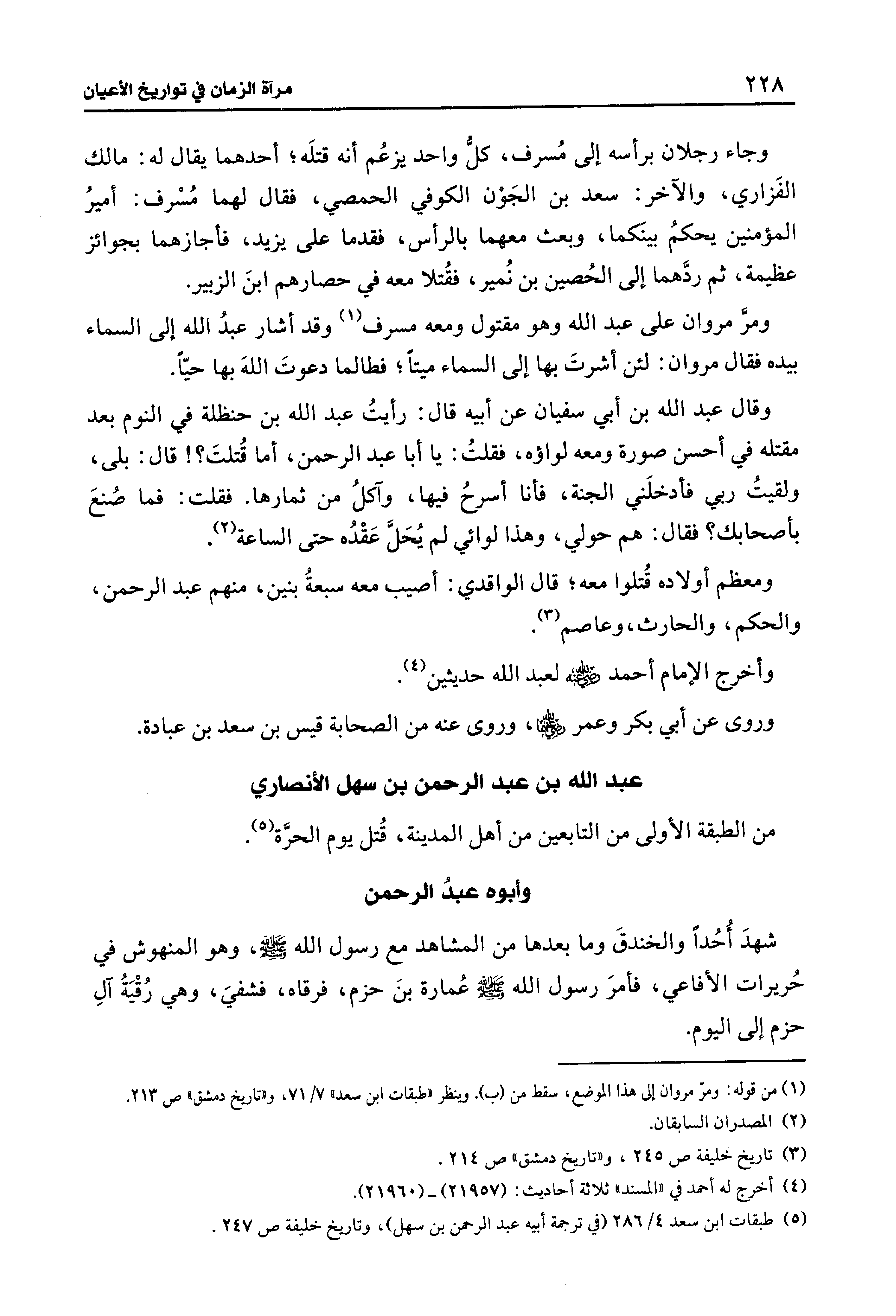 (¬5) طبقات ابن سعد 4/ 286 (في ترجمة أبيه عبد الرحمن بن سهل)، وتاريخ خليفة ص 247.