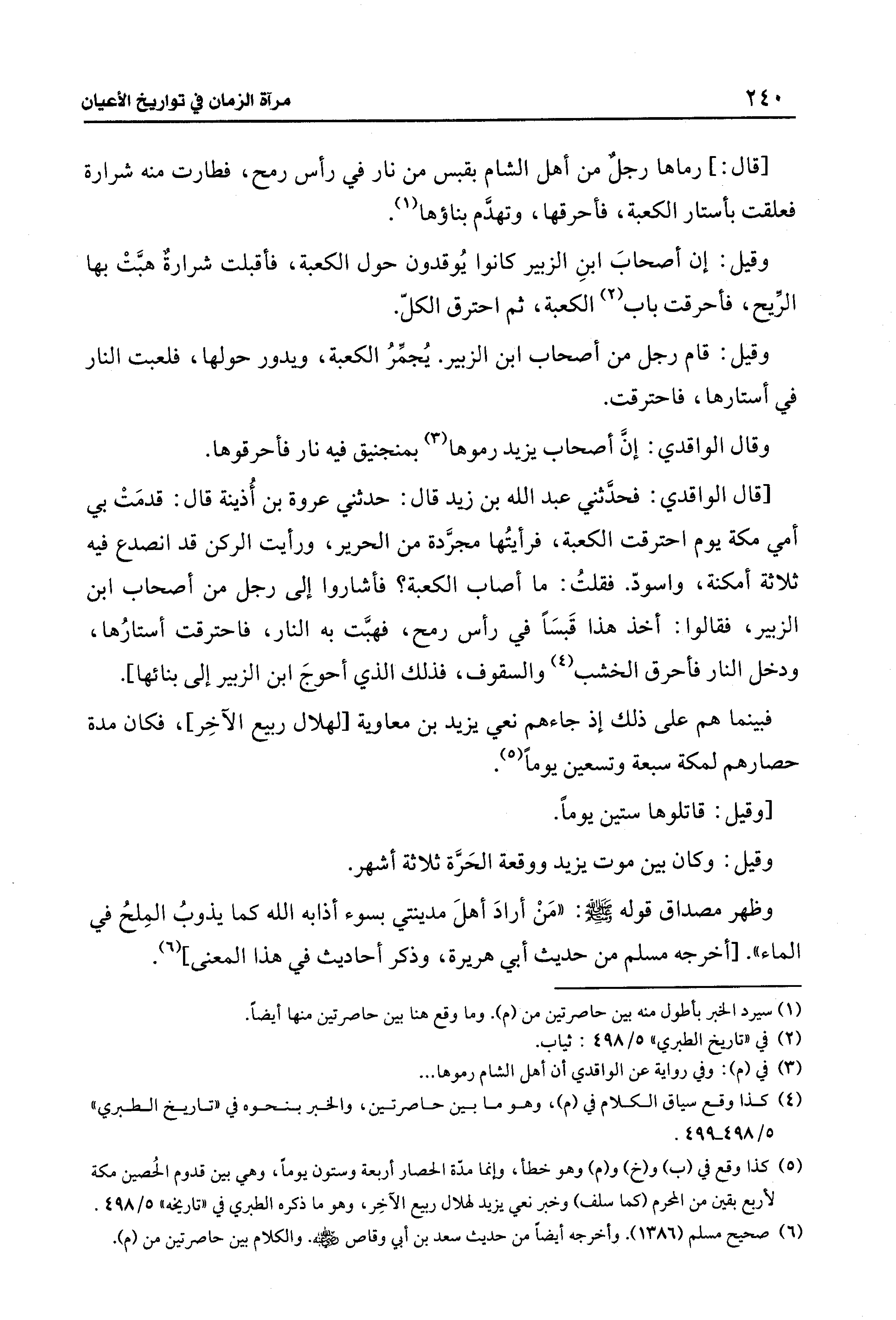 (¬5) كذا وقع في (ب) و (خ) و (م) وهو خطأ، وإنما مدّة الحصار أربعة وستون يومًا، وهي بين قدوم الحُصين مكة لأربع بقين من المحرم (كما سلف) وخبر نعي يزيد لهلال ربيع الآخِر، وهو ما ذكره الطبري في "تاريخه" 5/ 498.