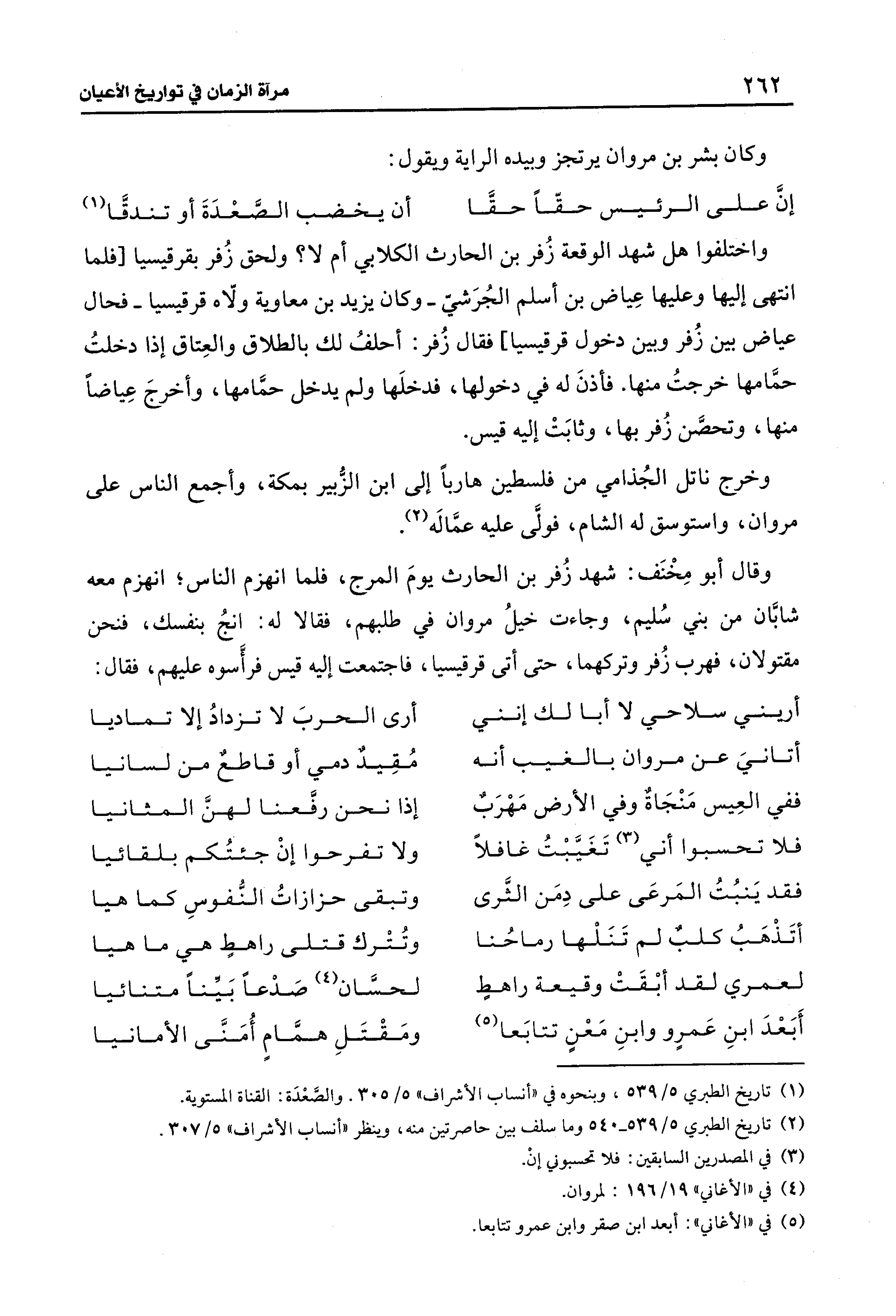 واختلفوا هل شهد الوقعة زُفر بن الحارث الكلابي أم لا؟ ولحق زُفر بقرقيسيا [فلما انتهى إليها وعليها عِياض بن أسلم الجُرَشيّ -وكان يزيد بن معاوية ولّاه قرقيسيا- فحال عياض بين زُفر وبين دخول قرقيسيا] فقال زُفر: أحلفُ لك بالطلاق والعِتاق إذا دخلتُ حمَّامها خرجتُ منها. فأذنَ له في دخولها، فدخلَها ولم يدخل حمَّامها، وأخرجَ عِياضًا منها، وتحصَّن زُفر بها، وثابَتْ إليه قيس.