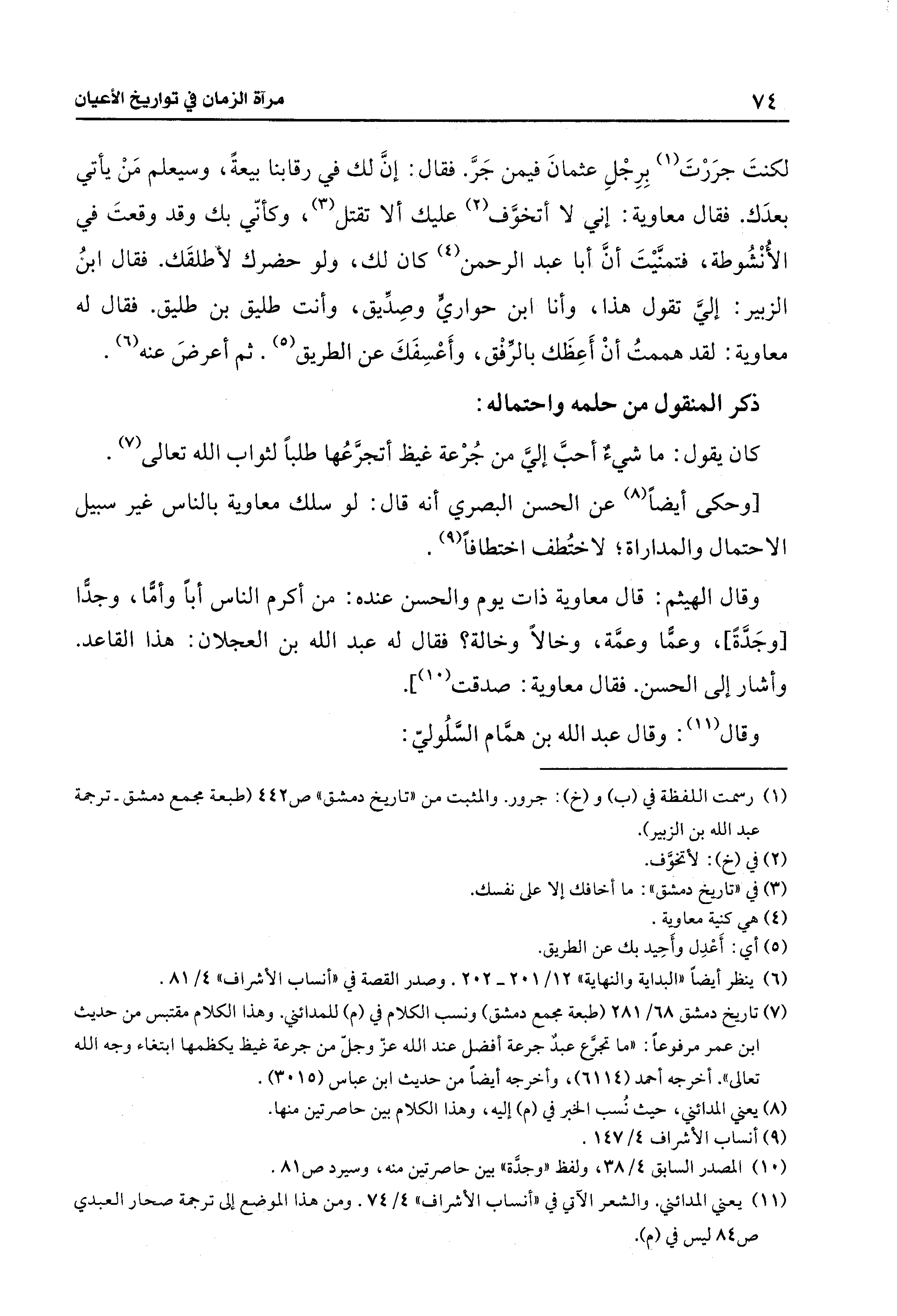 (¬7) تاريخ دمشق 68/ 281 (طبعة مجمع دمشق) ونسب الكلام في (م) للمدائني. وهذا الكلام مقتبس من حديث ابن عمر مرفوعًا: "ما تجرَّع عبدٌ جرعة أفضل عند الله عزّ وجلّ من جرعة غيظ يكظمها ابتغاء وجه الله تعالى". أخرجه أحمد (6114)، وأخرجه أيضًا من حديث ابن عباس (3015).