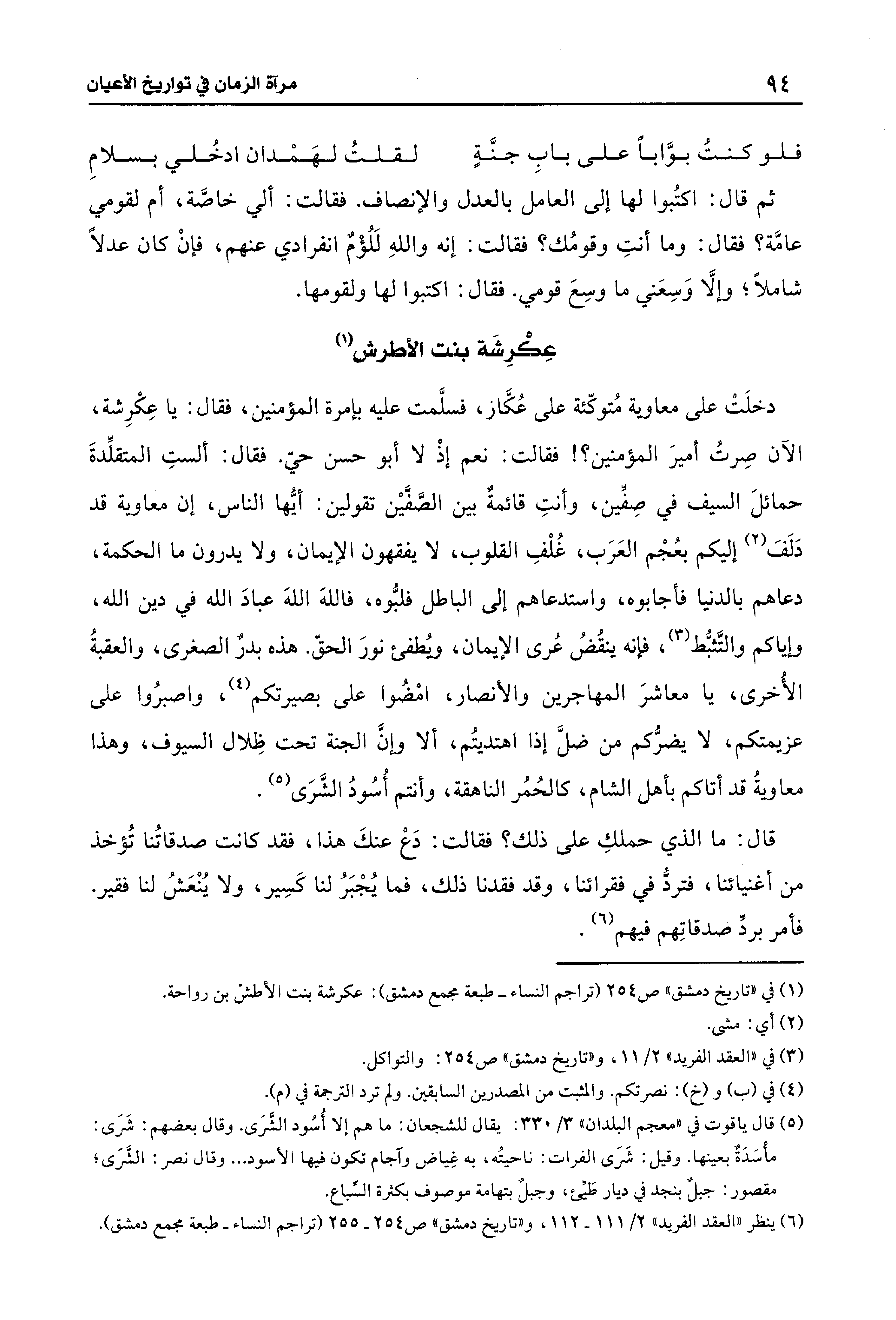 (¬6) ينظر "العقد الفريد" 2/ 111 - 112، و "تاريخ دمشق" ص 254 - 255 (تراجم النساء- طبعة مجمع دمشق).
