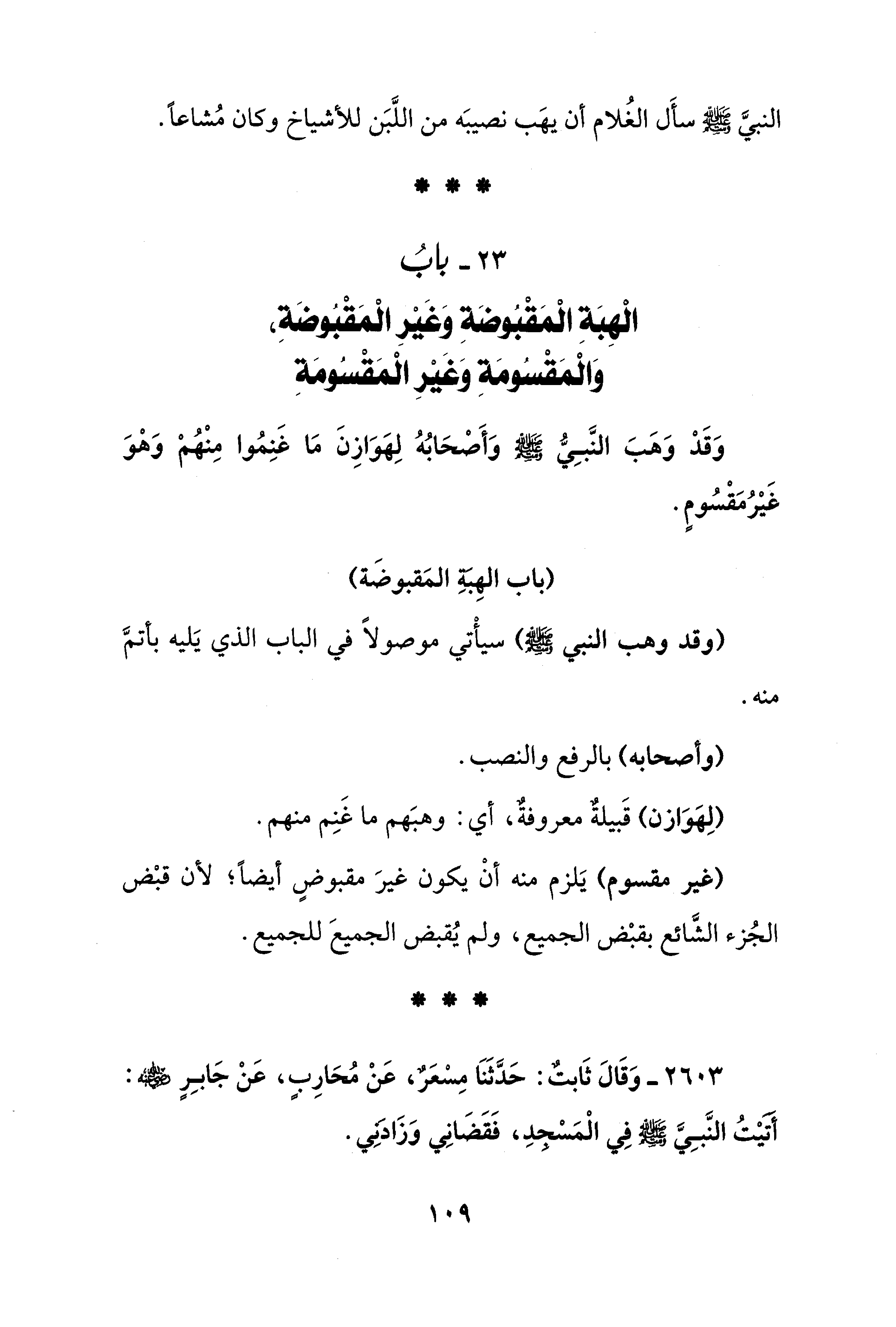 23 - بابُ الْهِبَة الْمَقْبُوضةِ وَغَيْرِ الْمَقْبُوضةِ، وَالْمَقْسُومَة وَغَيْرِ الْمَقْسُومَةِ