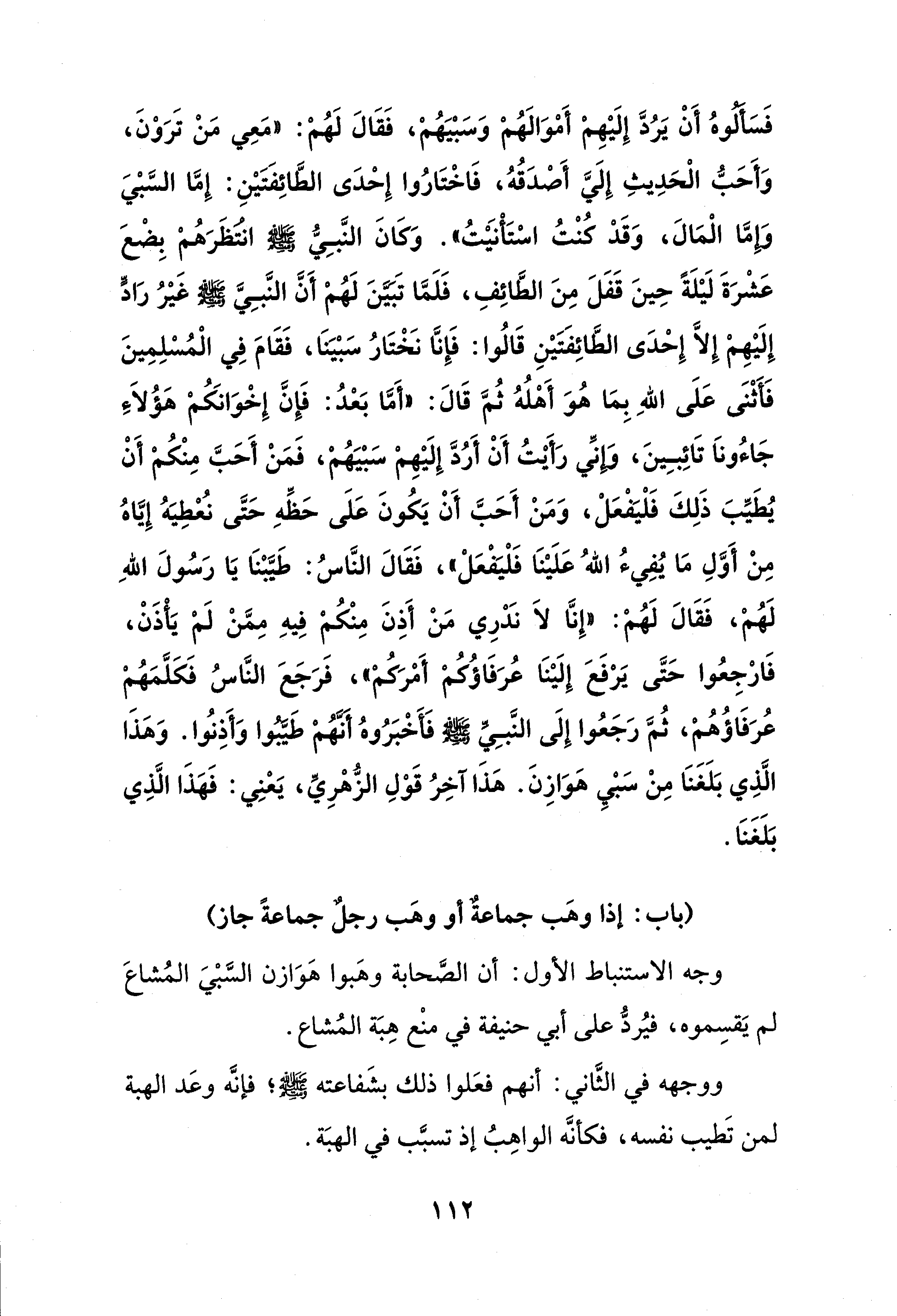 وجه الاستنباط الأول: أن الصَّحابة وهَبوا هَوَازن السَّبْيَ المُشاعَ لم يَقسِموه، فيُردُّ على أبي حنيفة في منعْ هِبَة المُشاع.