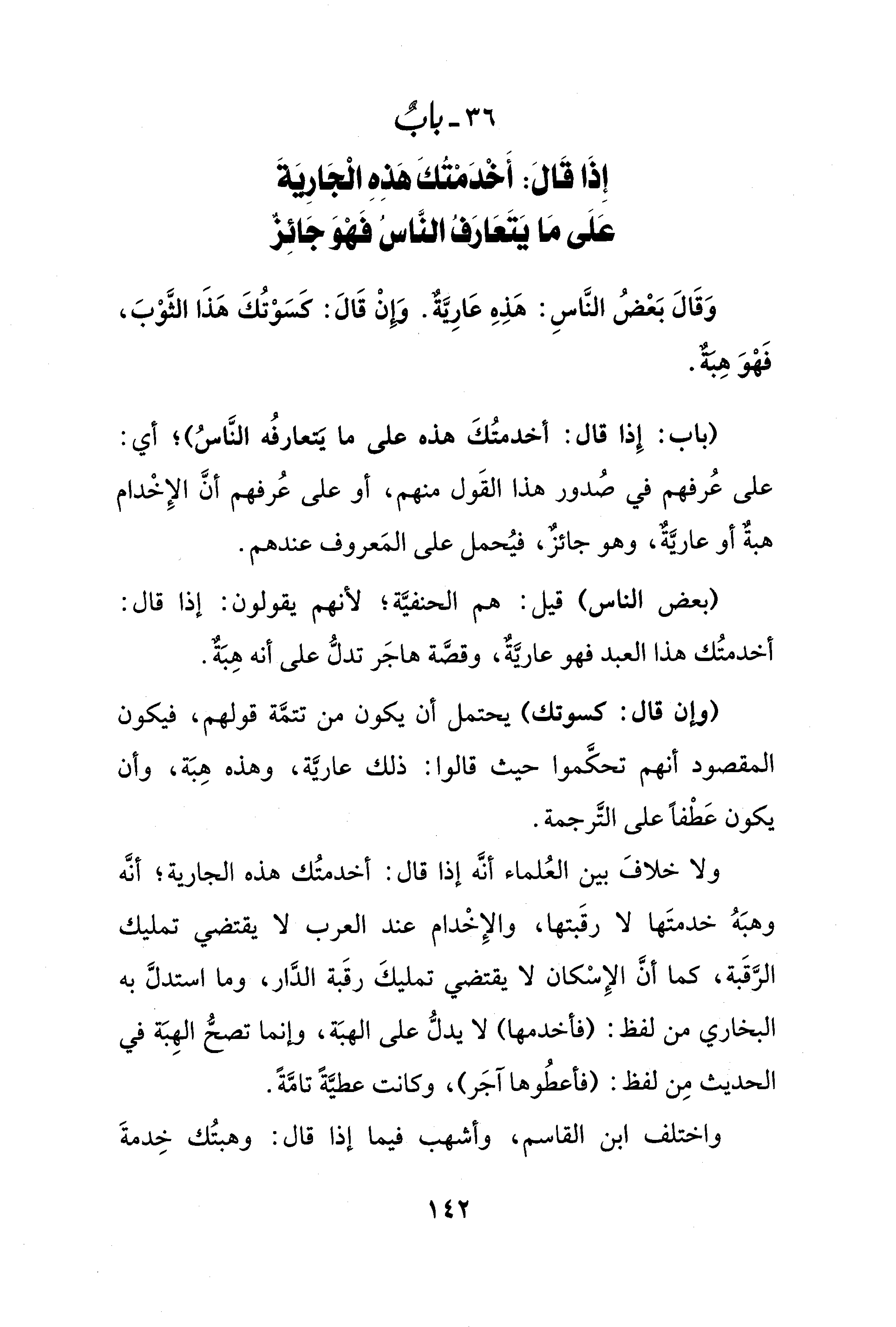 36 - بابٌ إِذَا قَالَ: أَخْدَمْتُكَ هَذِهِ الْجَارِيَةَ عَلَى مَا يَتَعَارَفُ النَّاسُ فَهْوَ جَائِزٌ