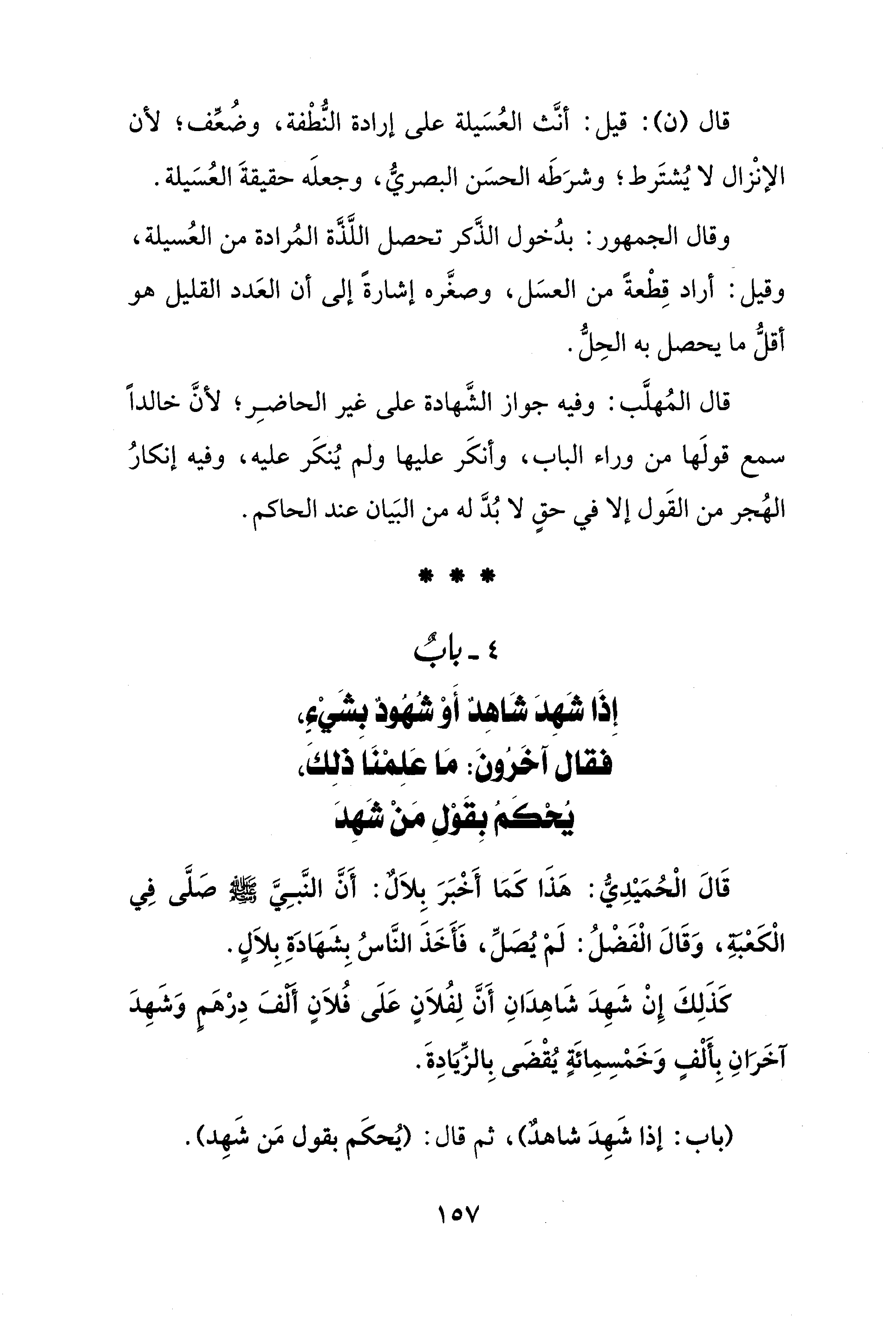 4 - بابٌ إِذَا شَهِدَ شَاهِدٌ أَوْ شُهُودٌ بشَيْءٍ، فقال آخَرُونَ: مَا عَلِمْنَا ذلِكَ، يُحْكَمُ بِقَوْلِ مَنْ شَهِدَ