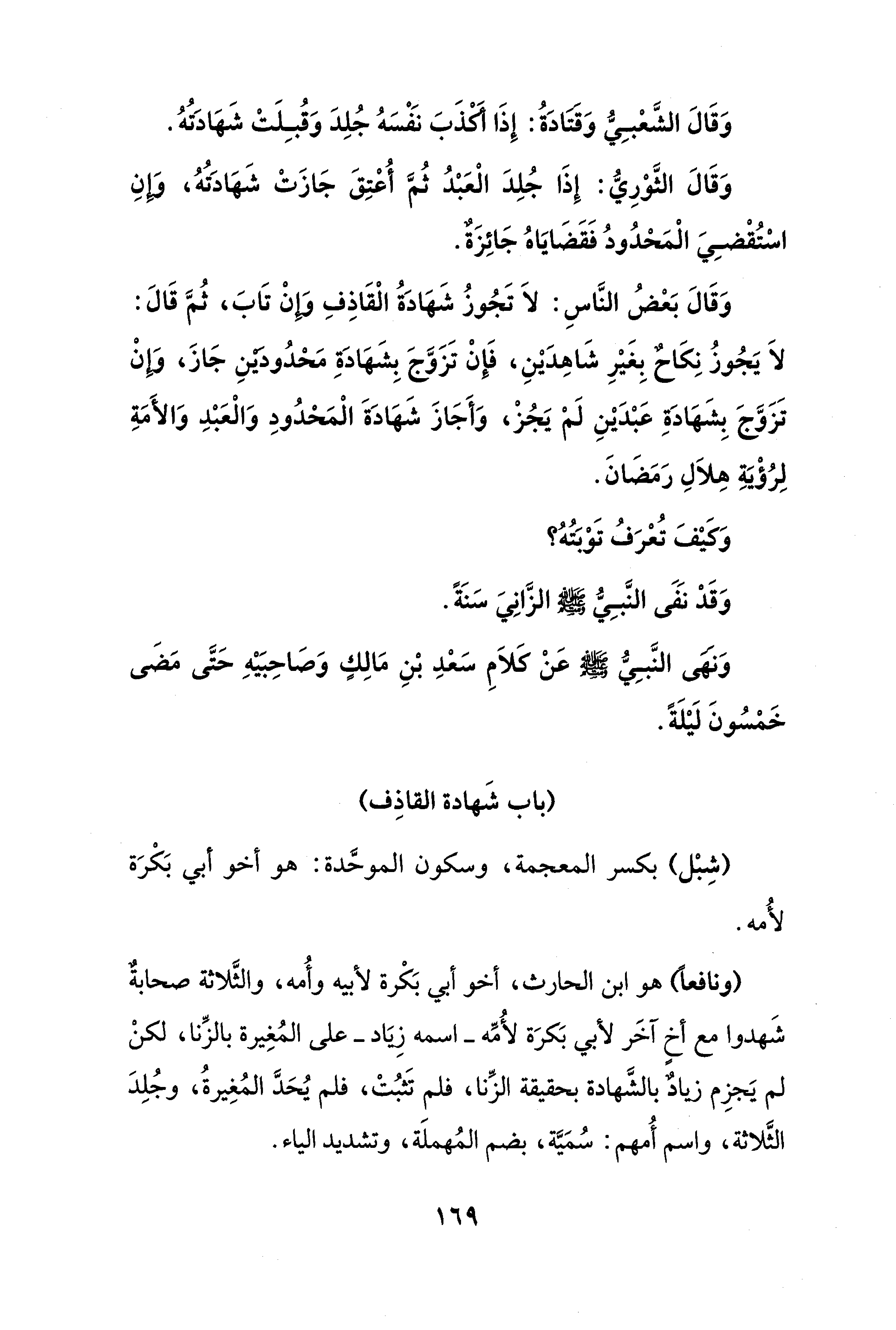 وَقَالَ بَعْضُ النَّاسِ: لَا تَجُوزُ شَهَادَةُ الْقَاذِفِ وَإِنْ تَابَ، ثُمَّ قَالَ: لَا يَجُوزُ نِكَاحٌ بِغيرِ شَاهِدَيْنِ، فَإِنْ تَزَوَّجَ بِشَهَادَةِ مَحْدُودَيْنِ جَازَ، وَإِنْ تَزَوَّجَ بِشَهَادَةِ عَبْدَيْنِ لَمْ يَجُزْ، وَأَجَازَ شَهَادَةَ الْمَحْدُودِ وَالْعَبْدِ وَالأَمَةِ لِرُؤْيَةِ هِلَالِ رَمَضَانَ.