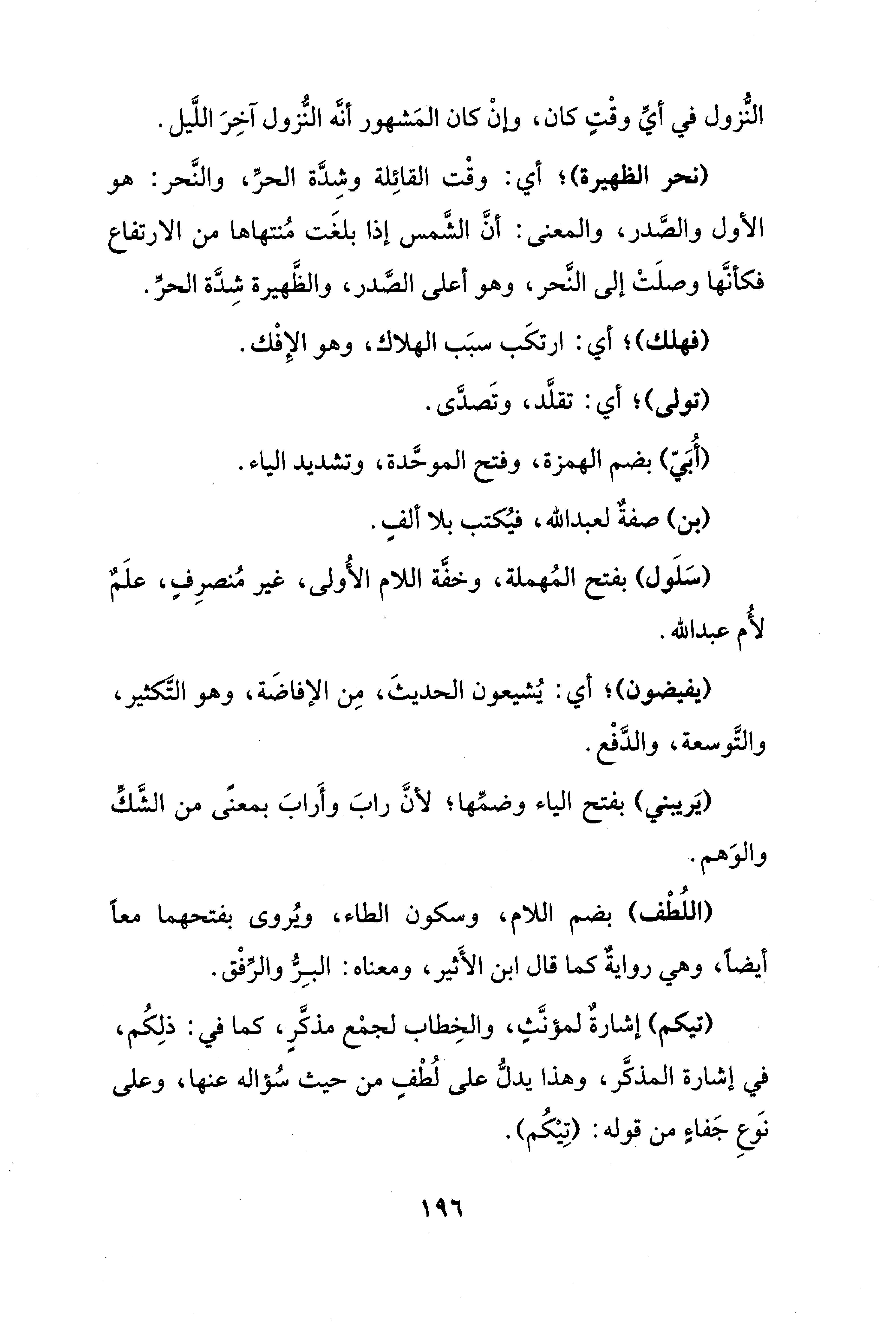 (نحو الظهيرة)؛ أي: وقْت القائِلة وشِدَّة الحرِّ، والنَّحر: هو الأول والصَّدر، والمعنى: أنَّ الشَّمس إذا بلغَت مُنتهاها من الارتفاع فكأَنَّها وصلَتْ إلى النَّحر، وهو أعلى الصَّدر، والظَّهيرة شِدَّة الحرِّ.