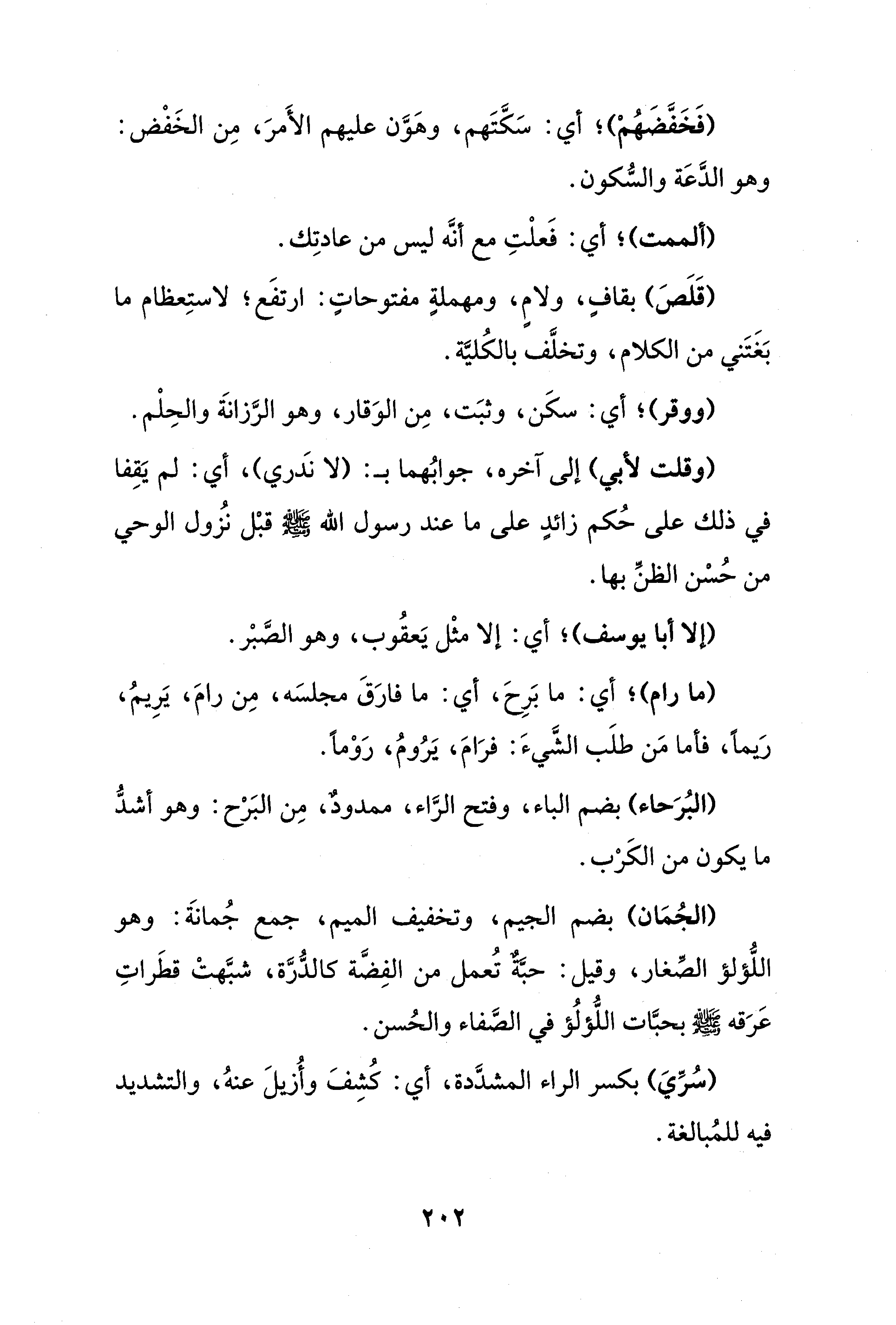 (الجُمَان) بضم الجيم، وتخفيف الميم، جمع جُمانَة: وهو اللُّؤلؤ الصِّغار، وقيل: حبَّةٌ تُعمل من الفِضَّة كالدُّرَّة، شبَّهتْ قطَراتِ عَرَقه - صلى الله عليه وسلم - بحبَّات اللُّؤلُؤ في الصَّفاء والحُسن.
