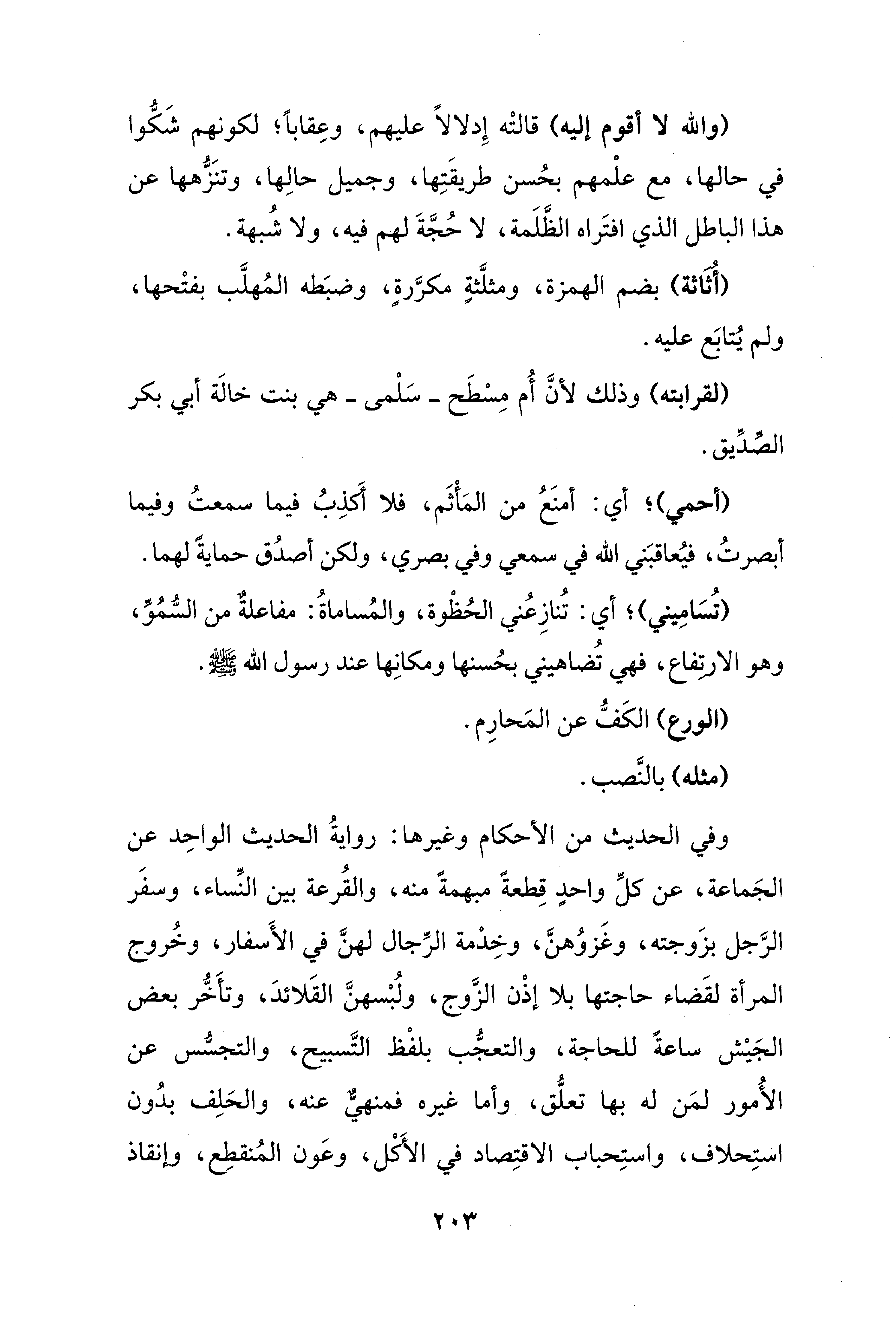 (والله لا أقوم إليه) قالتْه إِدلالًا عليهم، وعِقابًا؛ لكونهم شَكُّوا في حالها، مع علْمهم بحُسن طريقَتِها، وجميل حالِها، وتنَزُّهها عن هذا الباطل الذي افتَراه الظَّلَمة، لا حُجَّةَ لهم فيه، ولا شُبهة.