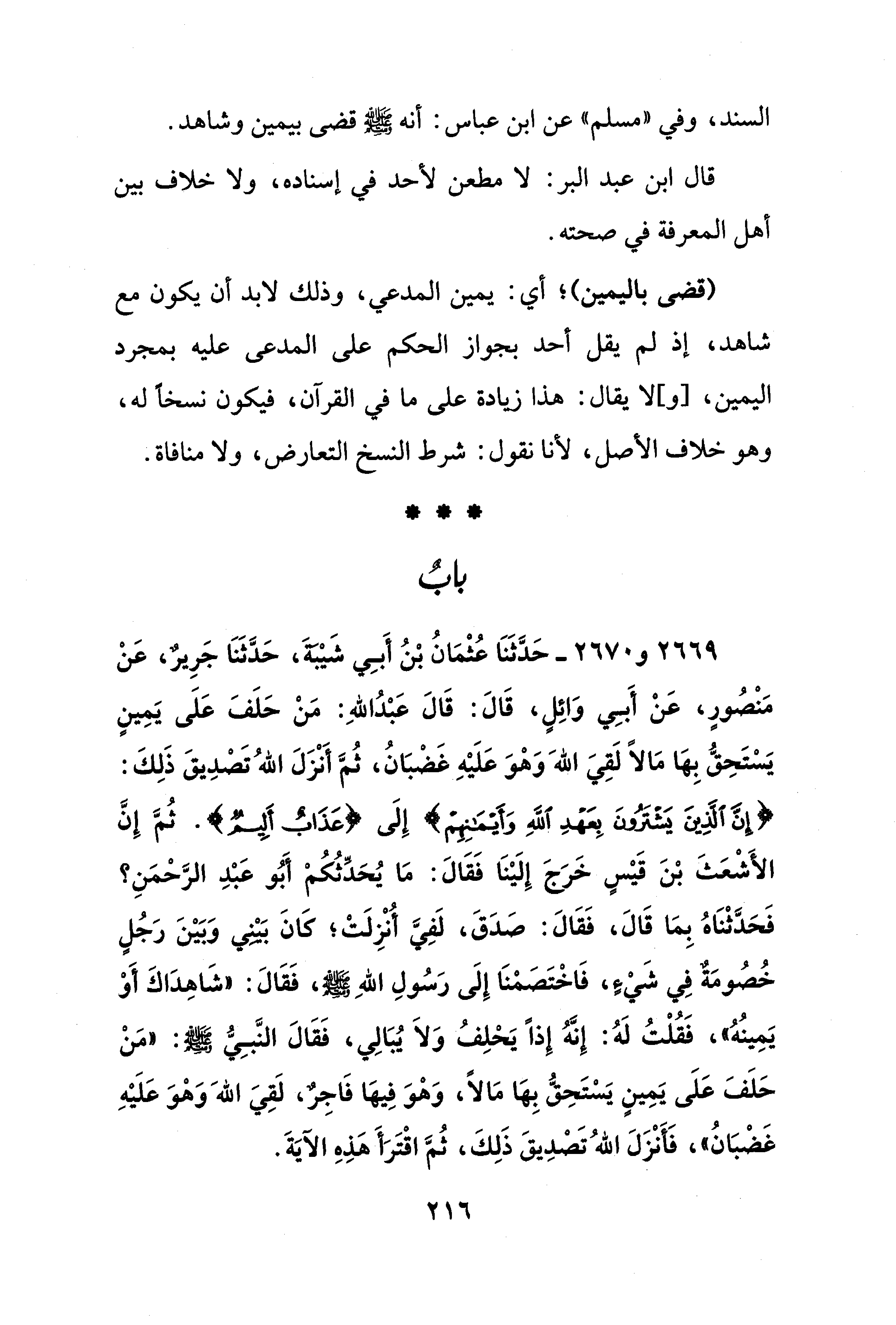 السند، وفي "مسلم" عن ابن عباس: أنَّه - صلى الله عليه وسلم - قضى بيمين وشاهد.