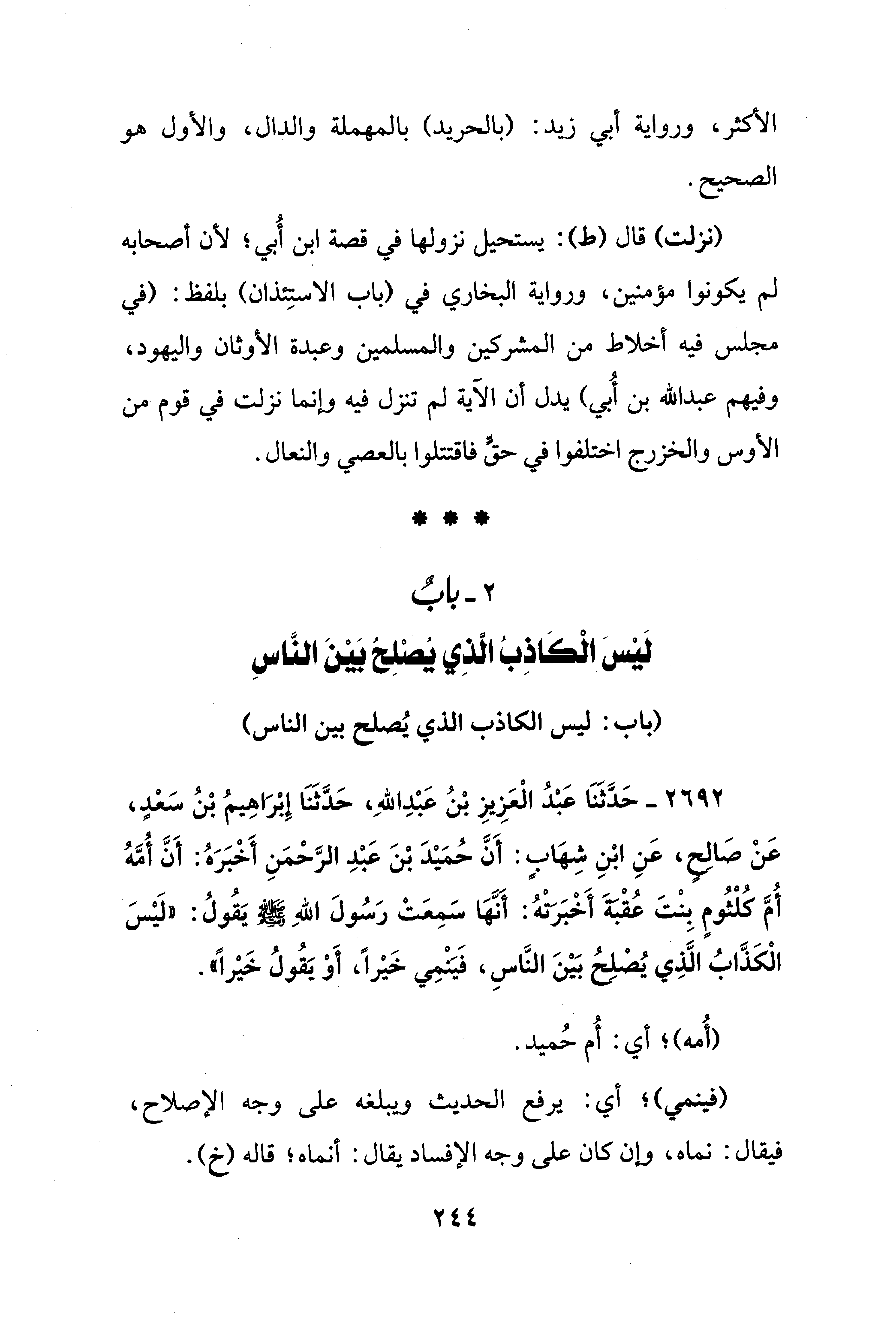 2 - بابٌ لَيْسَ الْكَاذِبُ الذي يُصْلِحُ بَيْنَ النَّاسِ