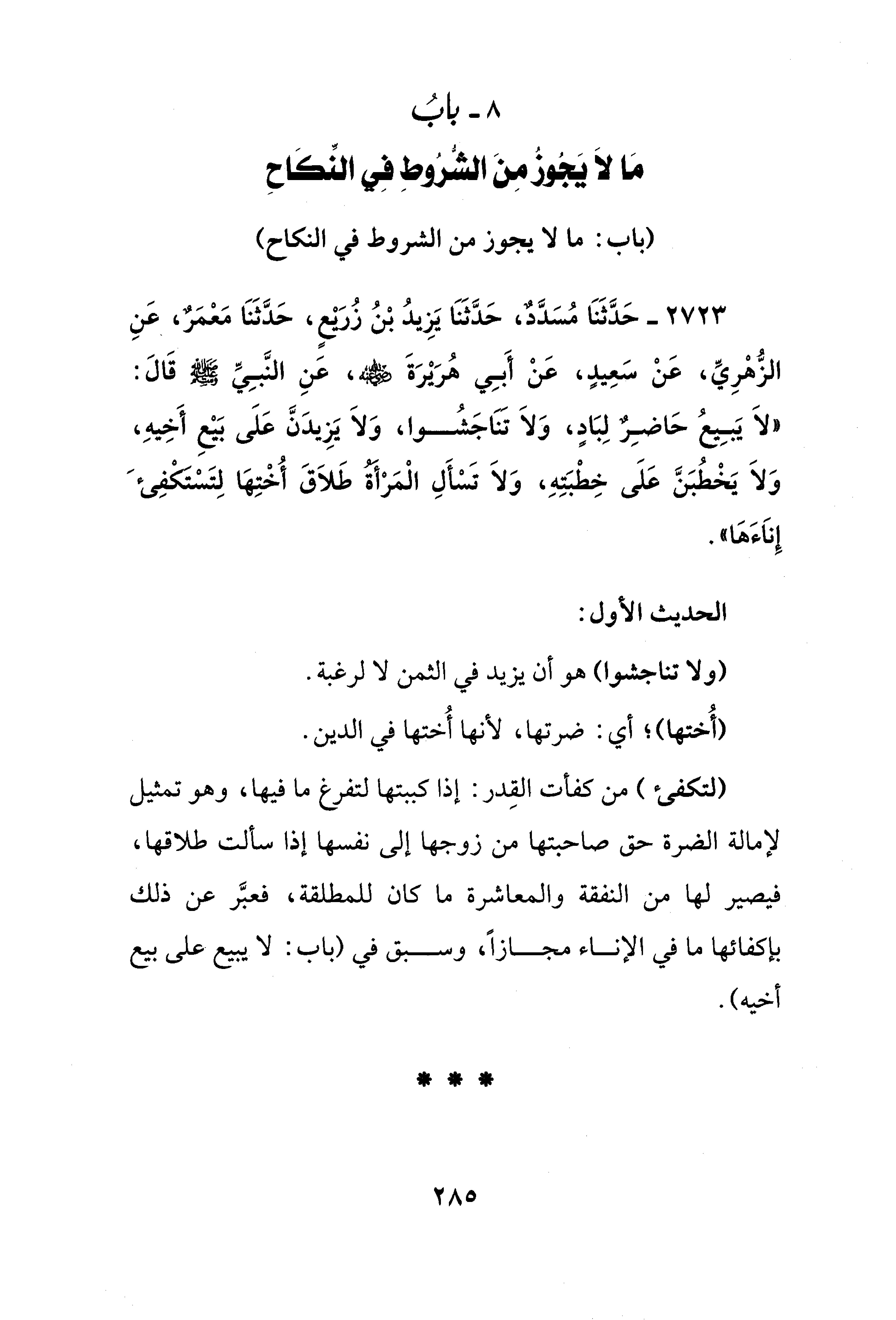 8 - بابُ مَا لاَ يَجُوزُ مِنَ الشُّرُوطِ فِي النِّكَاحِ