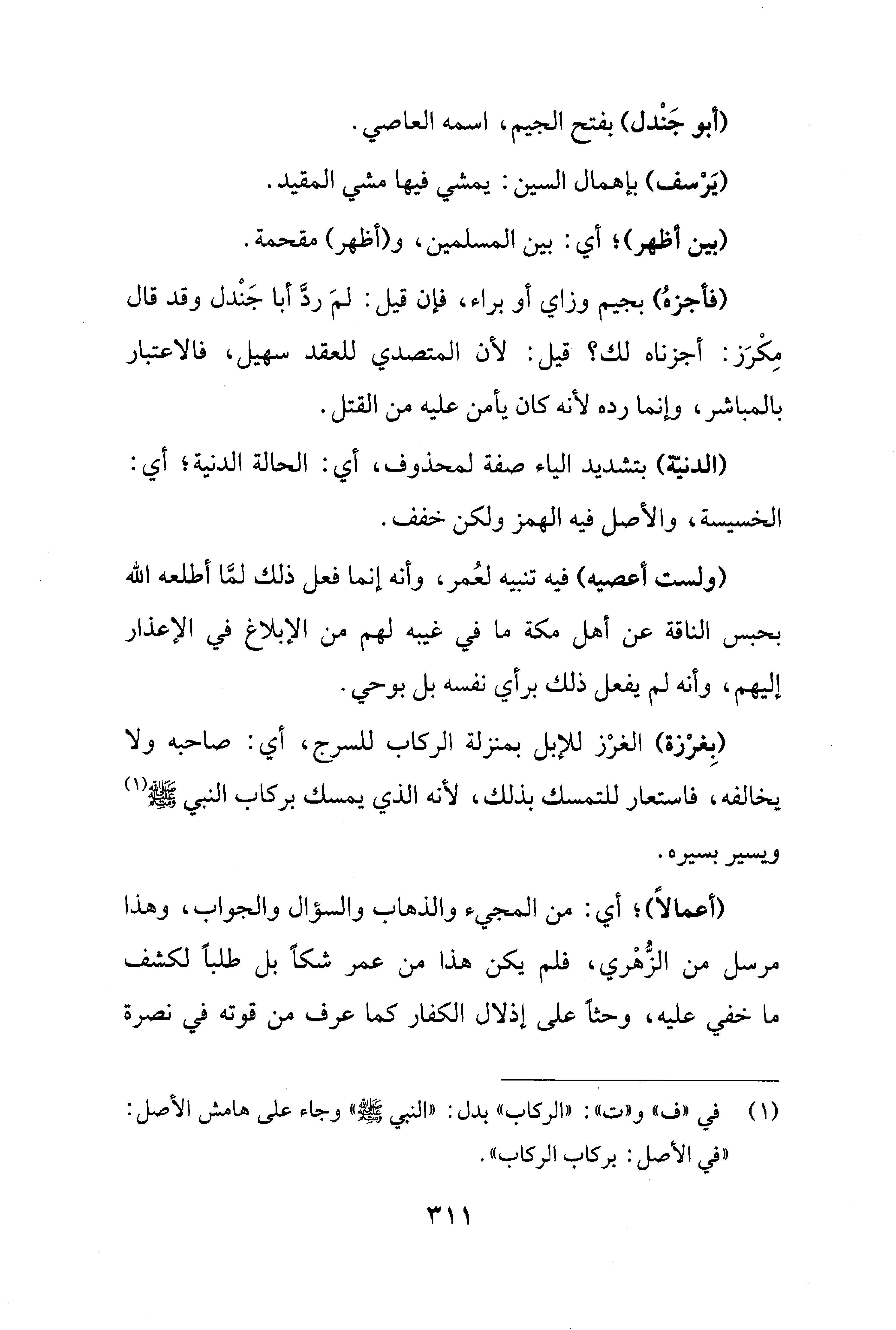 (¬1) في "ف" و"ت": "الركاب" بدل: "النبي - صلى الله عليه وسلم -" وجاء على هامش الأصل: "في الأصل: بركاب الركاب".