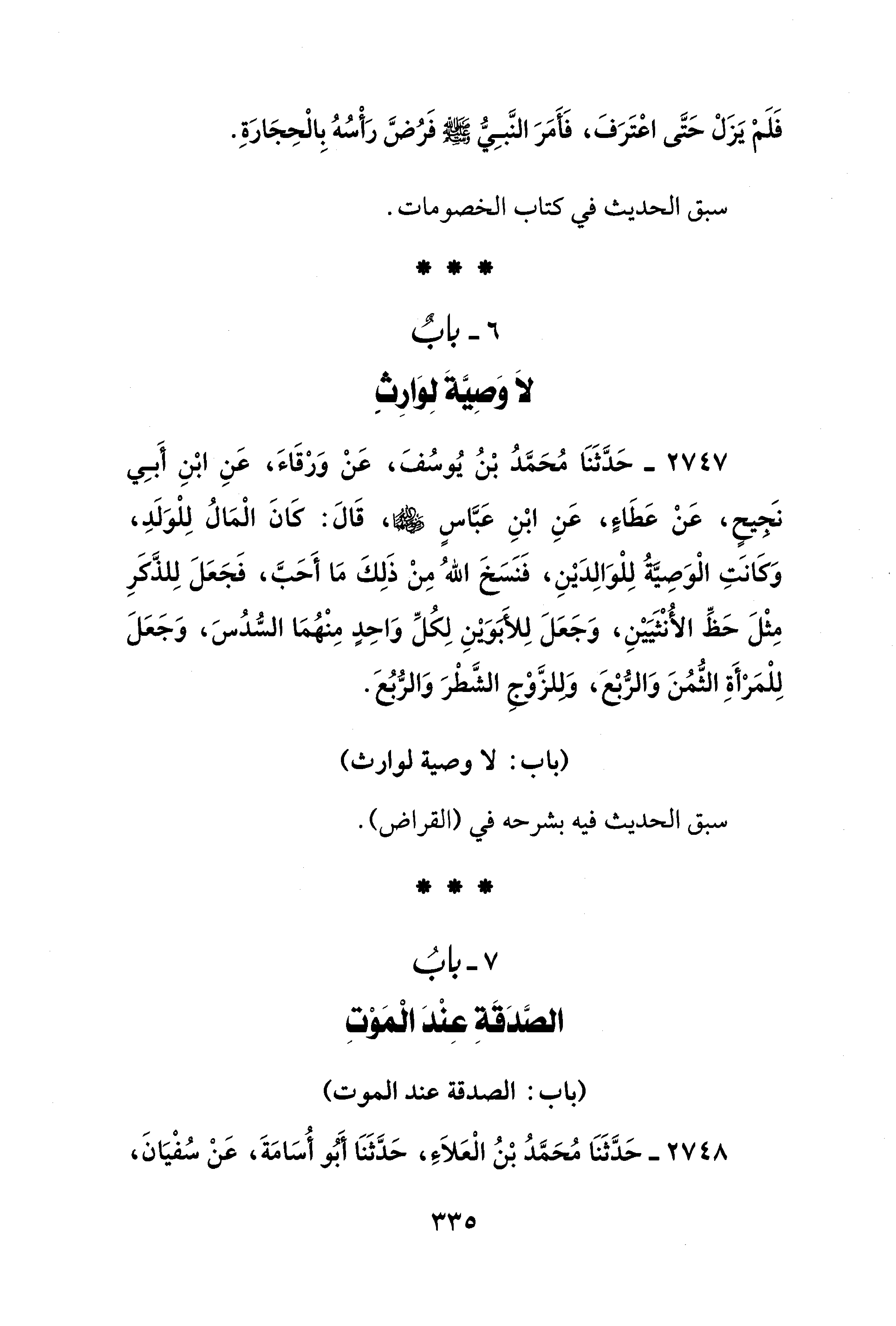 6 - بابٌ لاَ وَصِيَّةَ لِوَارِثٍ