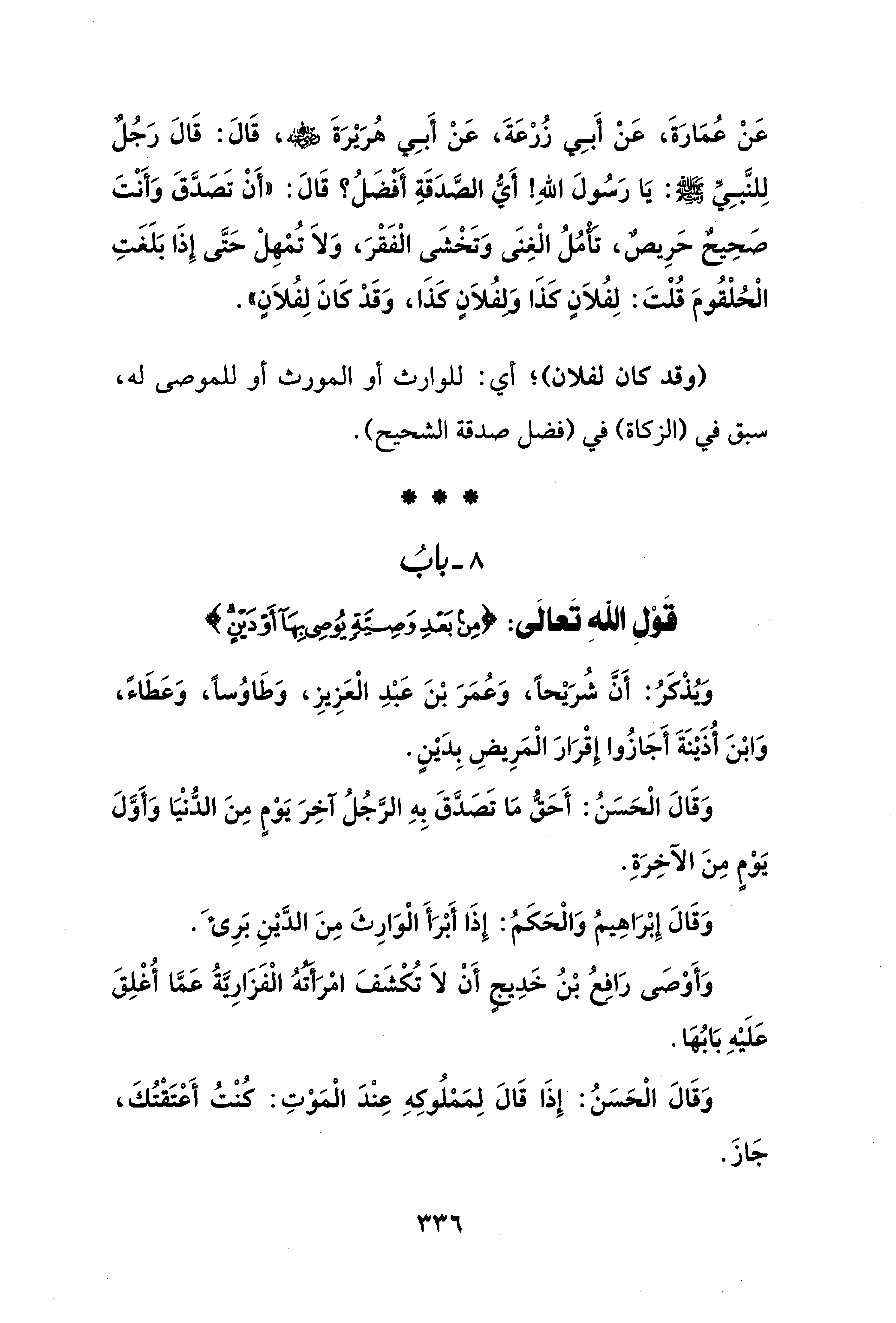 8 - بابُ قولِ الله تَعالى: {مِنْ بَعْدِ وَصِيَّةٍ يُوصِي بِهَا أَوْ دَيْنٍ}