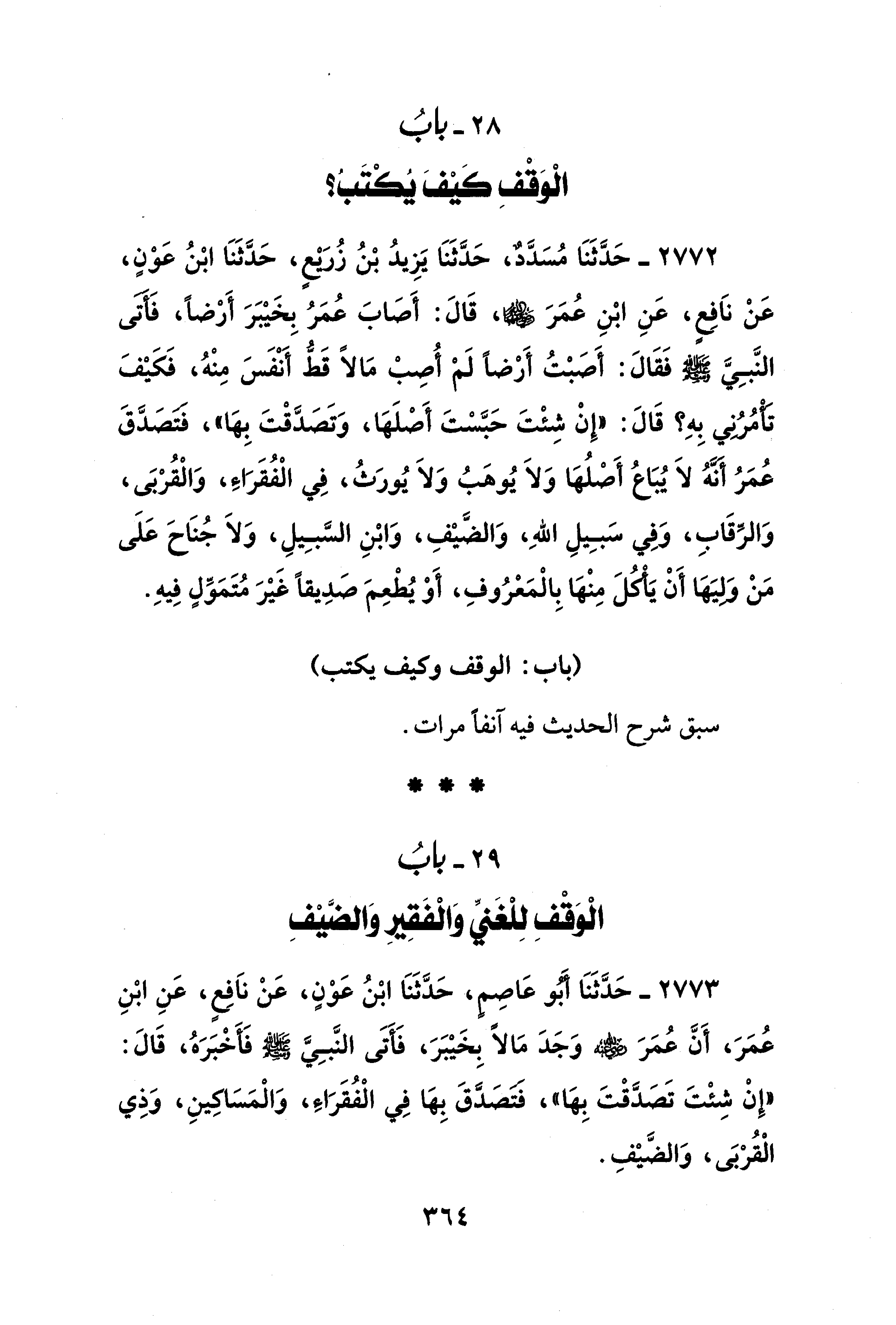 29 - بابُ الوقْفِ لِلْغَني وَالْفَقِيرِ وَالضَّيْفِ