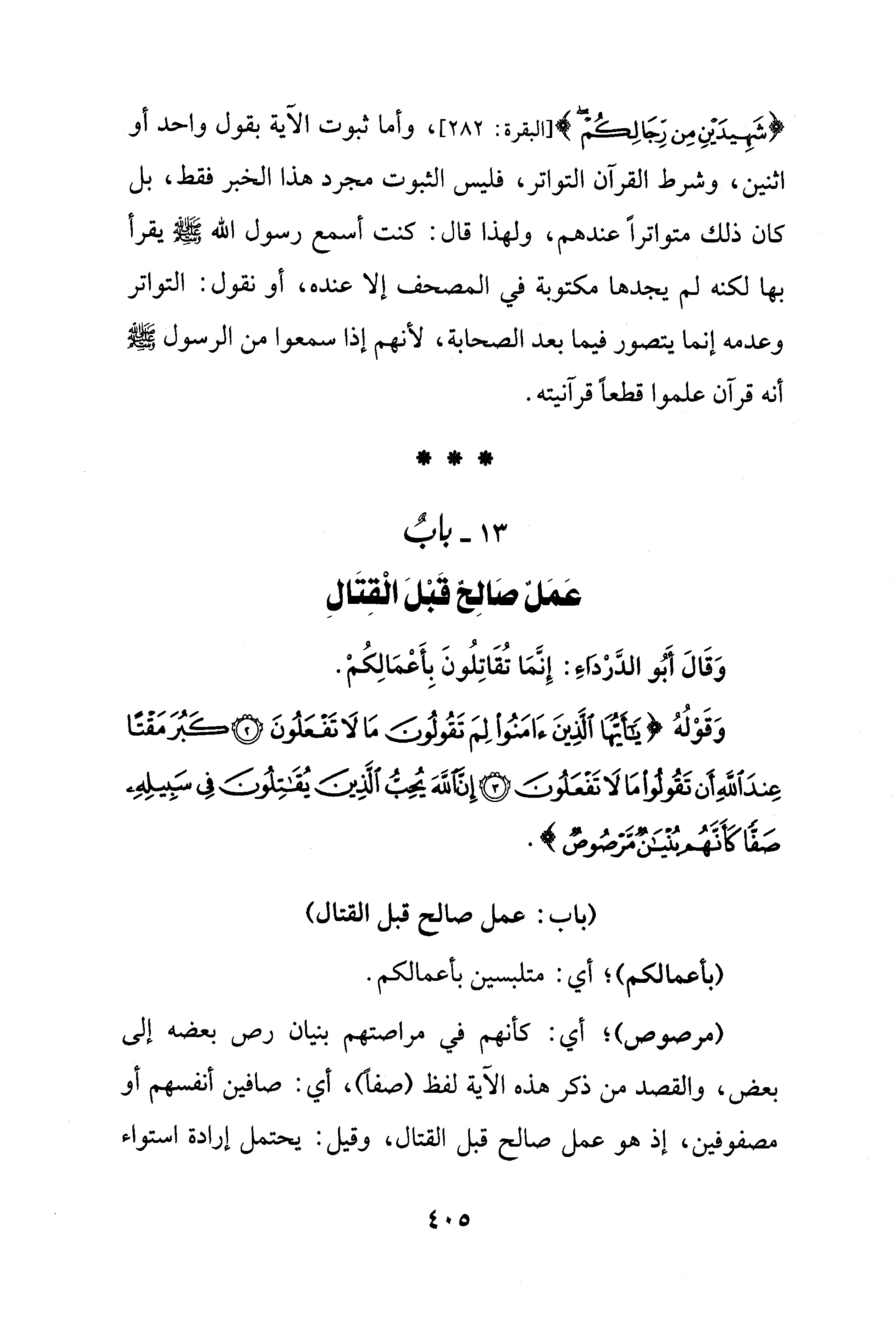 (مرصوص)؛ أي: كأنهم في مراصتهم بنيان رص بعضه إلى بعض، والقصد من ذكر هذه الآية لفظ (صفًّا)، أي: صافين أنفسهم أو مصفوفين، إذ هو عمل صالح قبل القتال، وقيل: يحتمل إرادة استواء