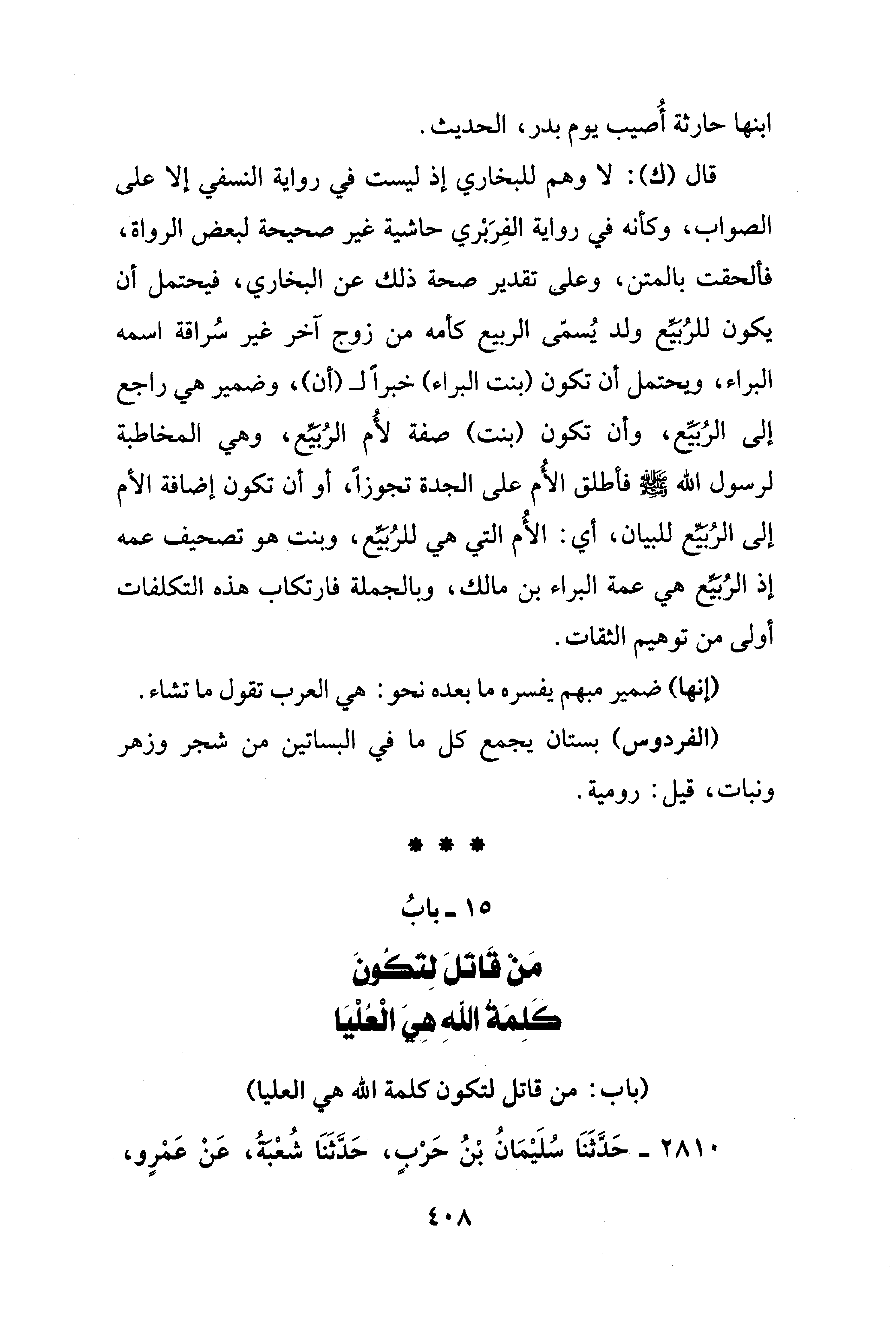 15 - بابُ مَنْ قَاتَلَ لِتَكُونَ كَلِمَةُ اللهِ هِيَ الْعُلْيَا