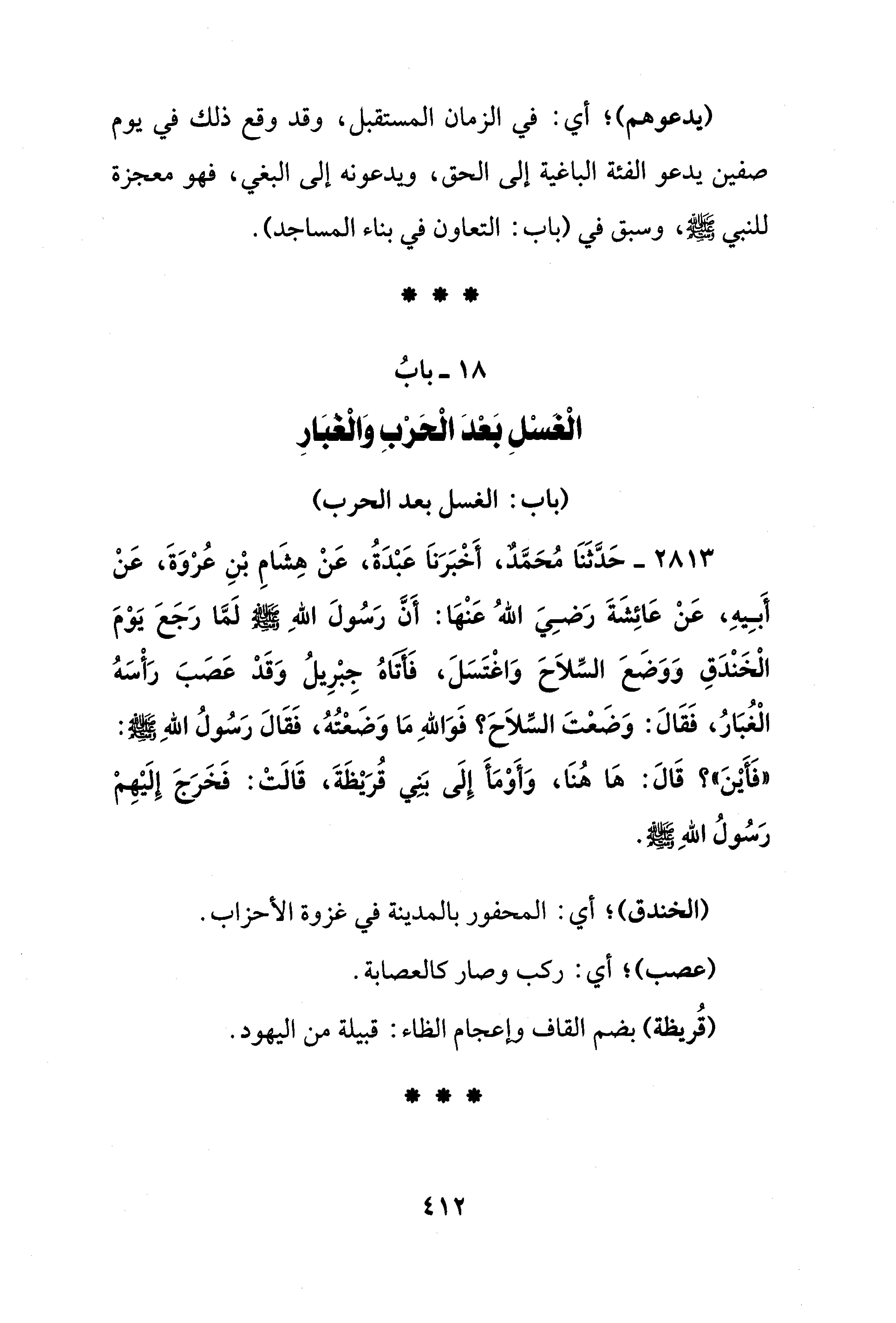 18 - بابُ الْغَسْلِ بَعْدَ الْحَرْبِ وَالْغبَارِ
