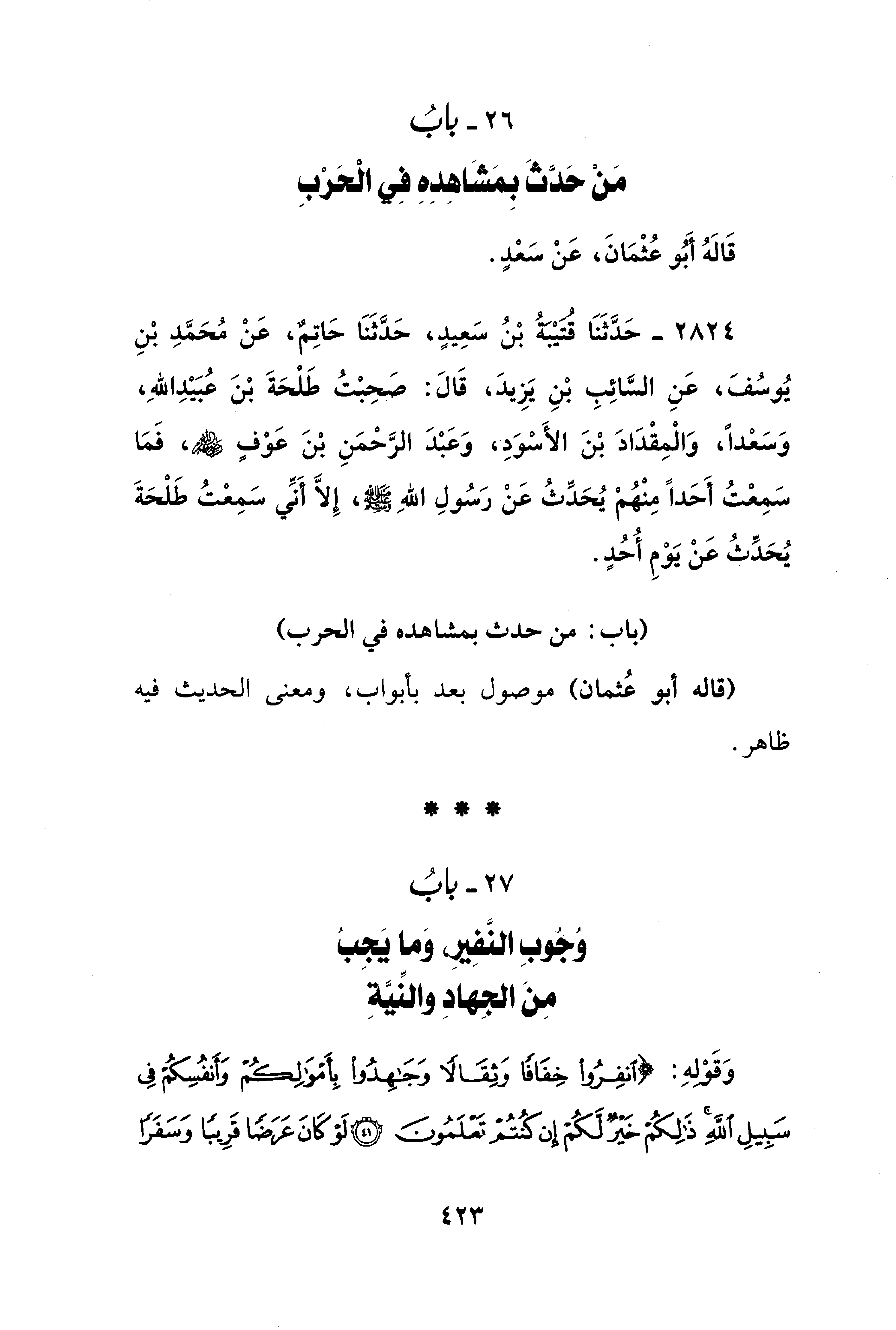 27 - بابُ وُجُوبِ النَّفِيرِ، وَما يَجِبُ مِنَ الجِهادِ والنِّيَّةِ