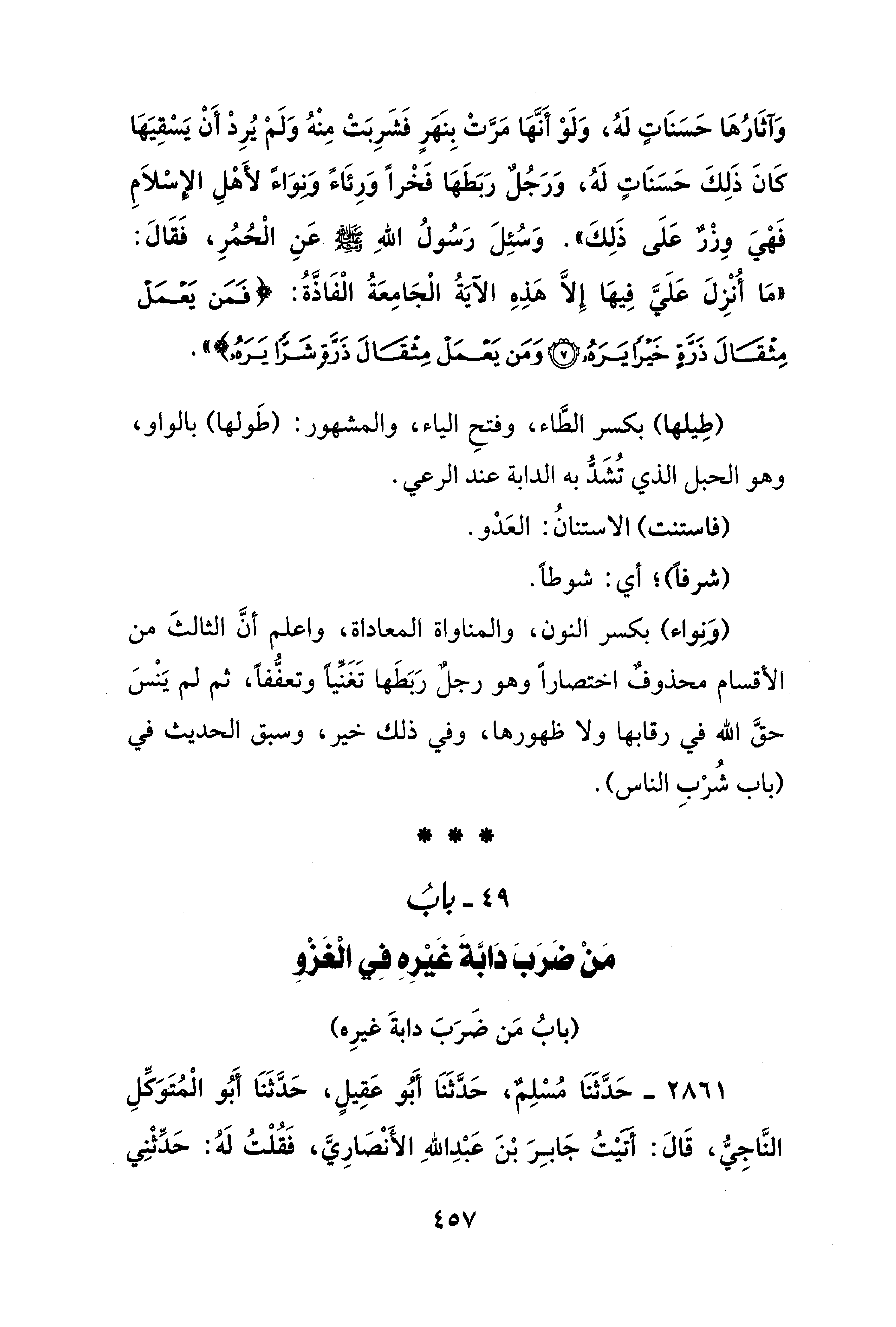 49 - بابُ مَنْ ضَرَبَ دَابَّةَ غَيْرِهِ فِي الْغَزْوِ