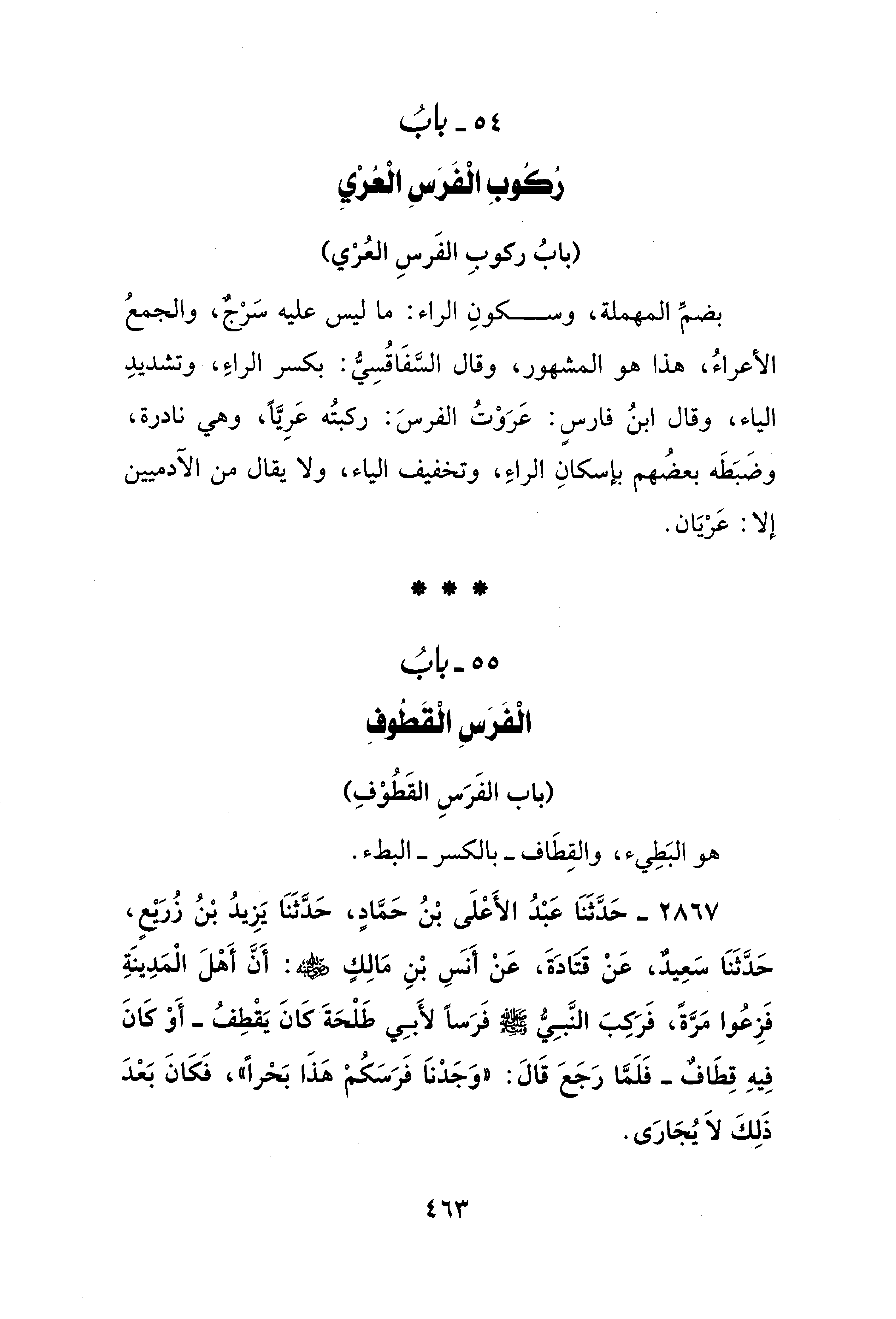 54 - بابُ رُكُوبِ الْفَرَسِ الْعُرْيِ