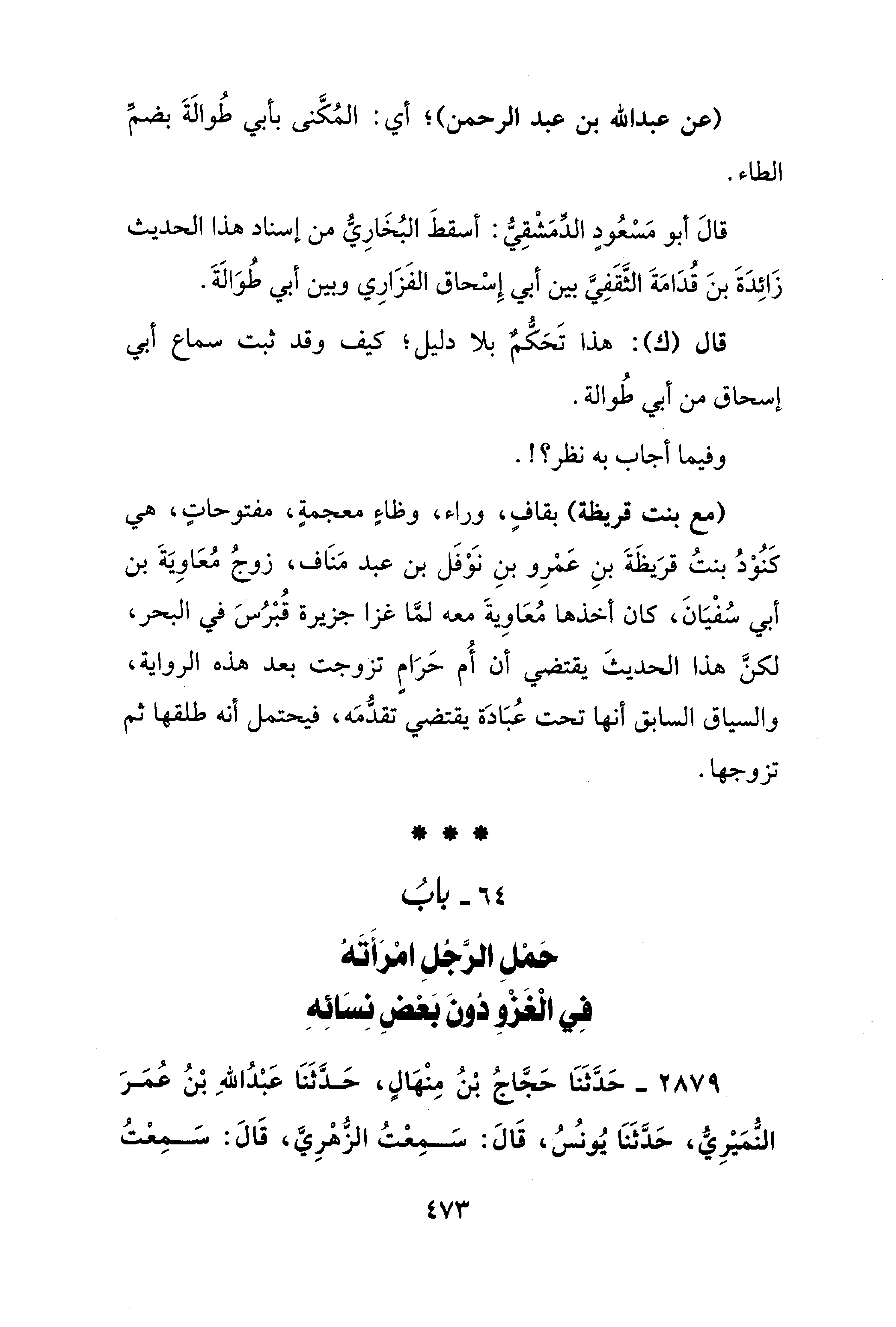 قالَ أبو مَسْعُودٍ الدِّمَشْقِيُّ: أسقطَ البُخَارِيُّ من إسناد هذا الحديث زَائِدَةَ بنَ قُدَامَةَ الثَّقَفِيَّ بين أبي إِسْحاق الفَزَارِي وبين أبي طُوَالَةَ.
