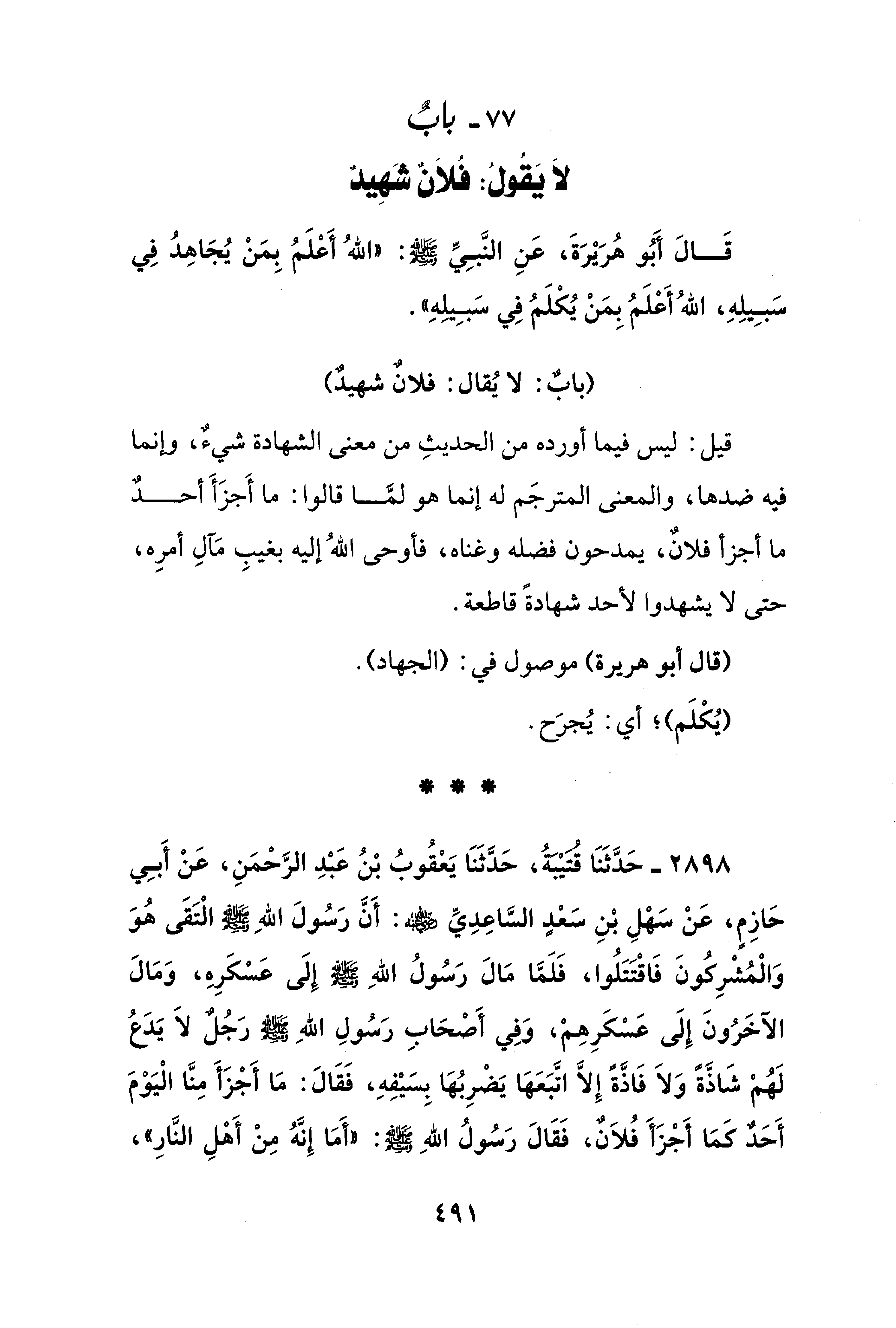 77 - بابٌ لاَ يَقُولُ: فُلاَنٌ شَهِيد