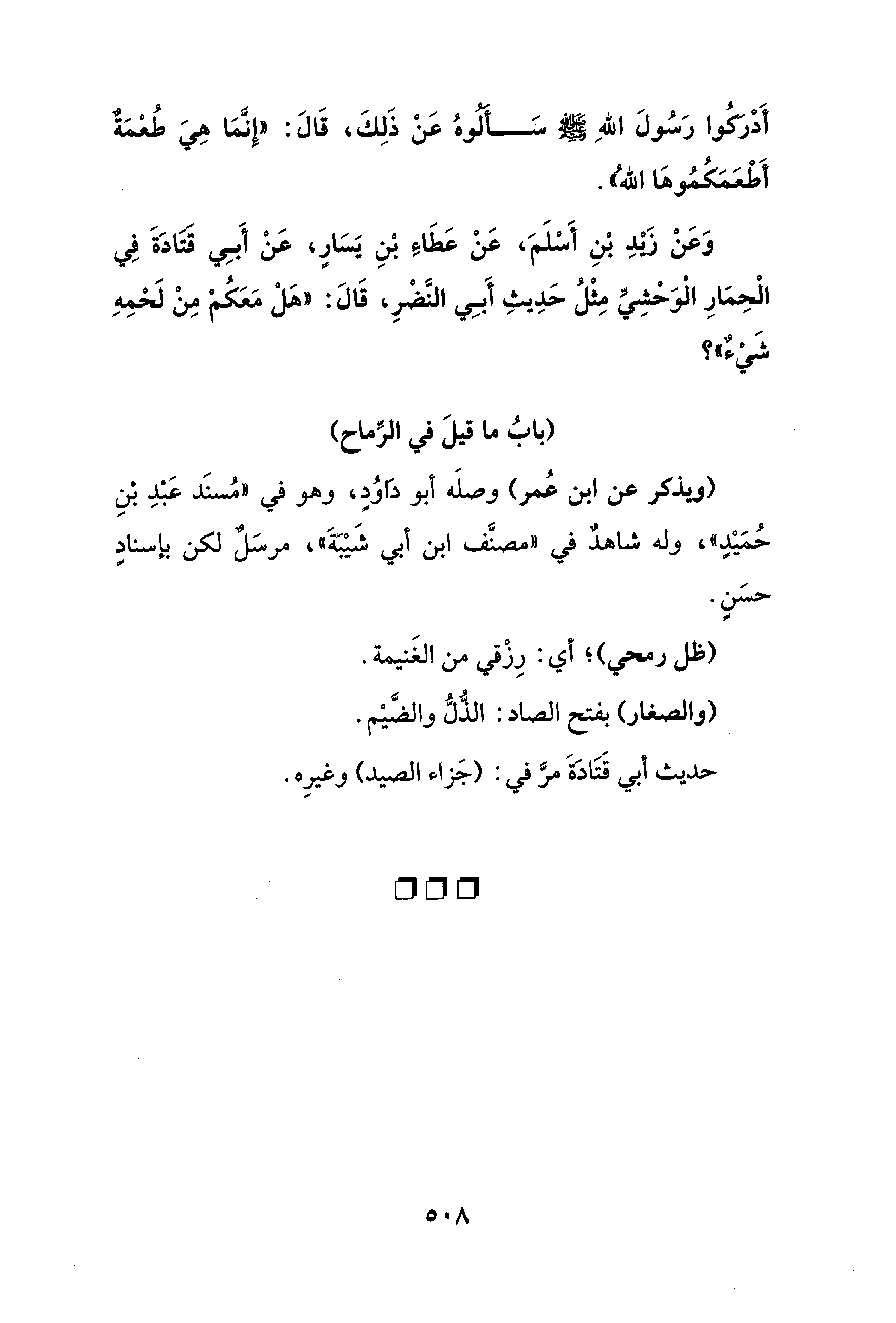 (ويذكر عن ابن عُمر) وصلَه أبو دَاوُدٍ، وهو في "مُسنَد عَبْدِ بْنِ حُمَيْدٍ"، وله شاهدٌ في "مصنَّف ابن أبي شَيْبَةَ"، مرسَلٌ لكن بإسنادٍ حسَنٍ.