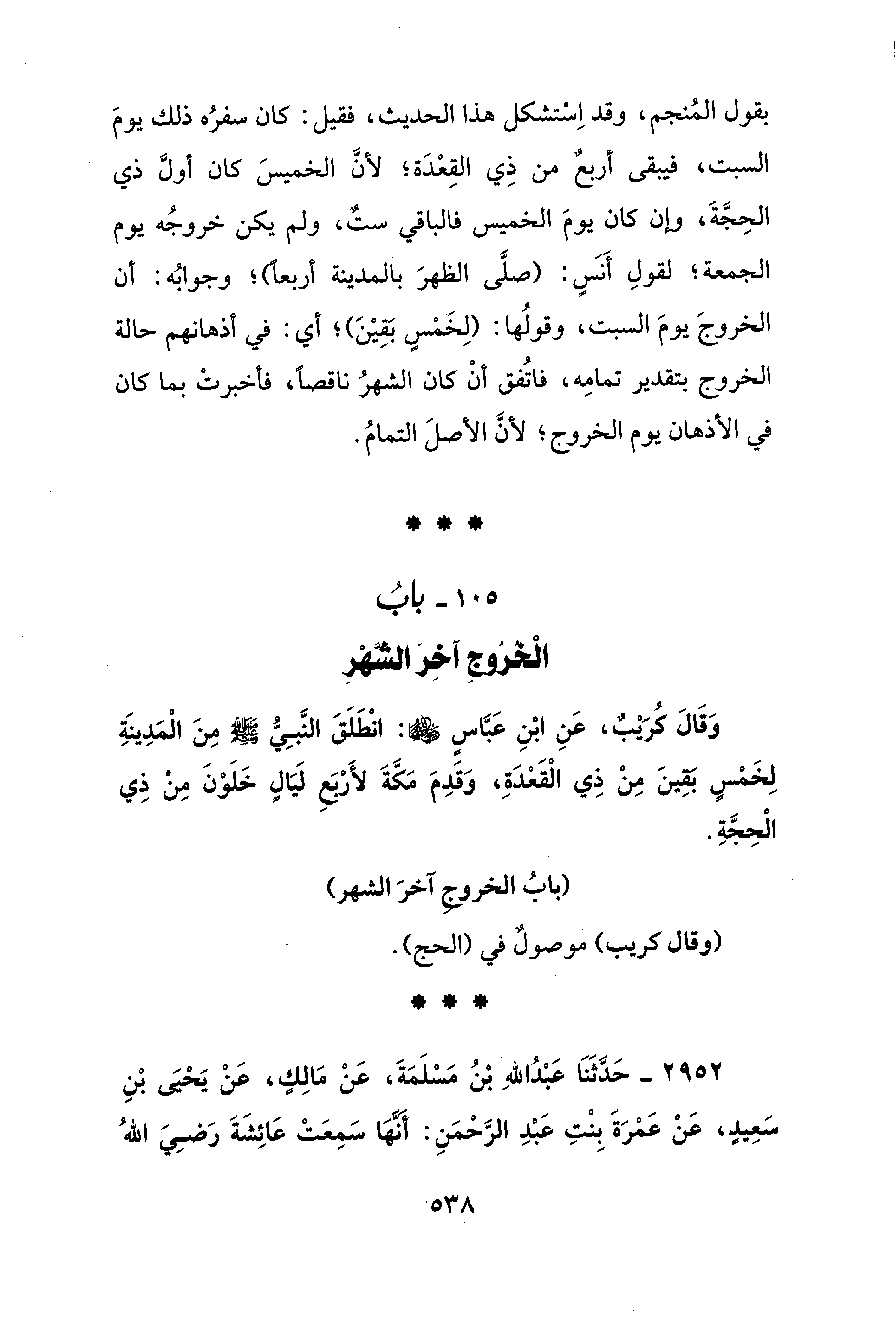 105 - بابُ الْخُرُوجِ آخِرَ الشَّهْرِ