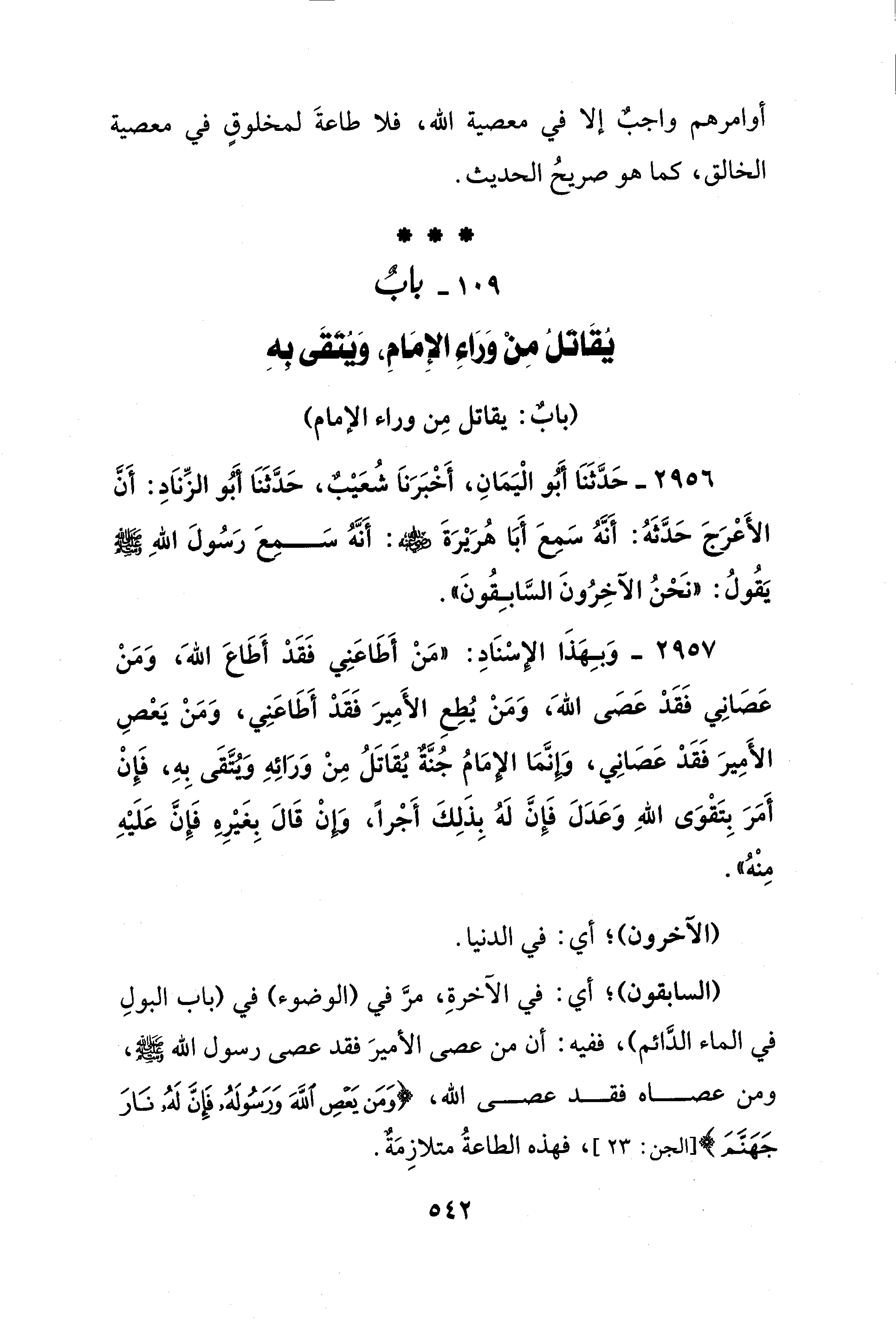 109 - بابٌ يُقَاتلُ مِنْ وَرَاءِ الإِمَامِ، ويُتَّقَى بهِ