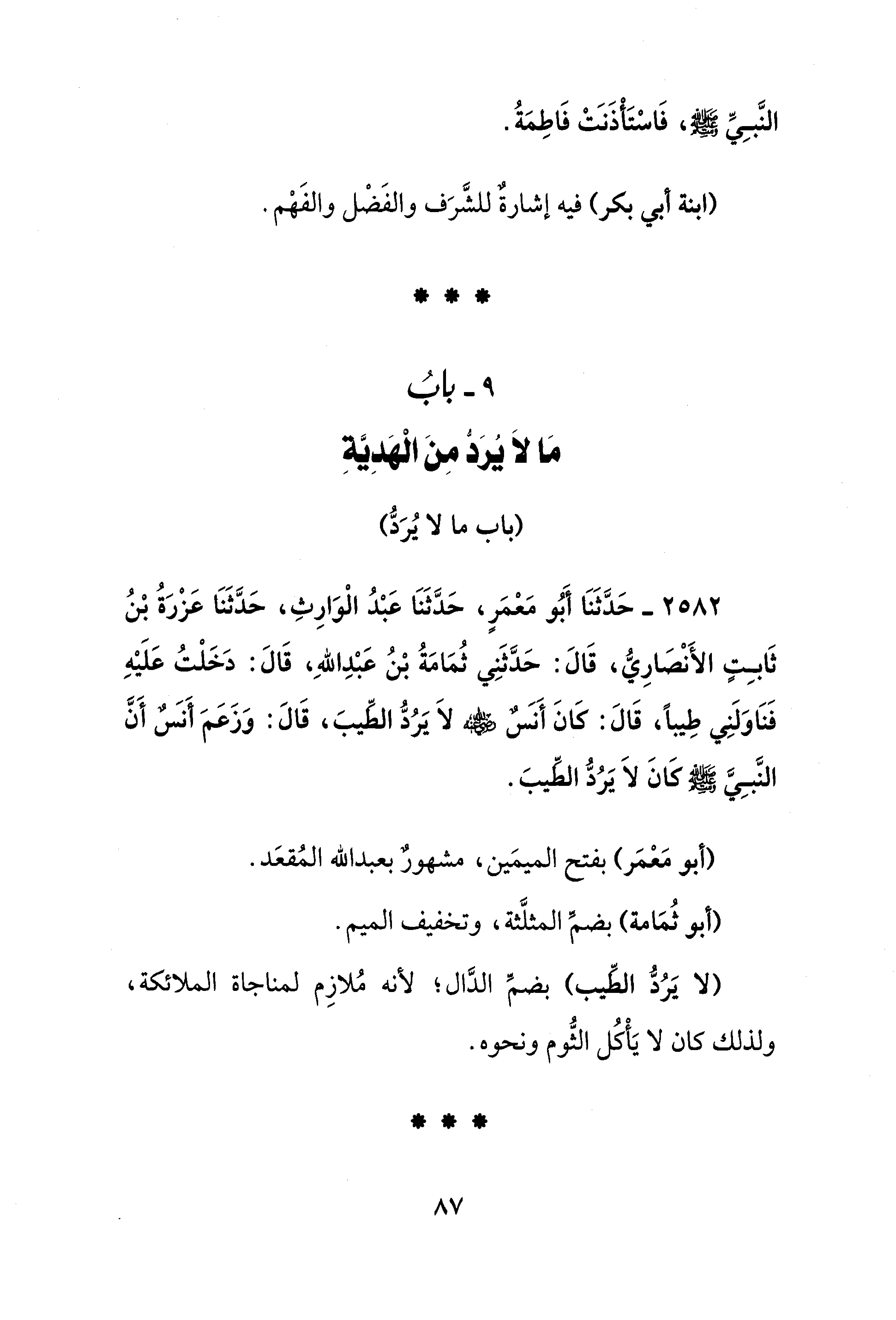 9 - بابُ مَا لاَ يُرَدُّ مِنَ الْهَدِيَّة