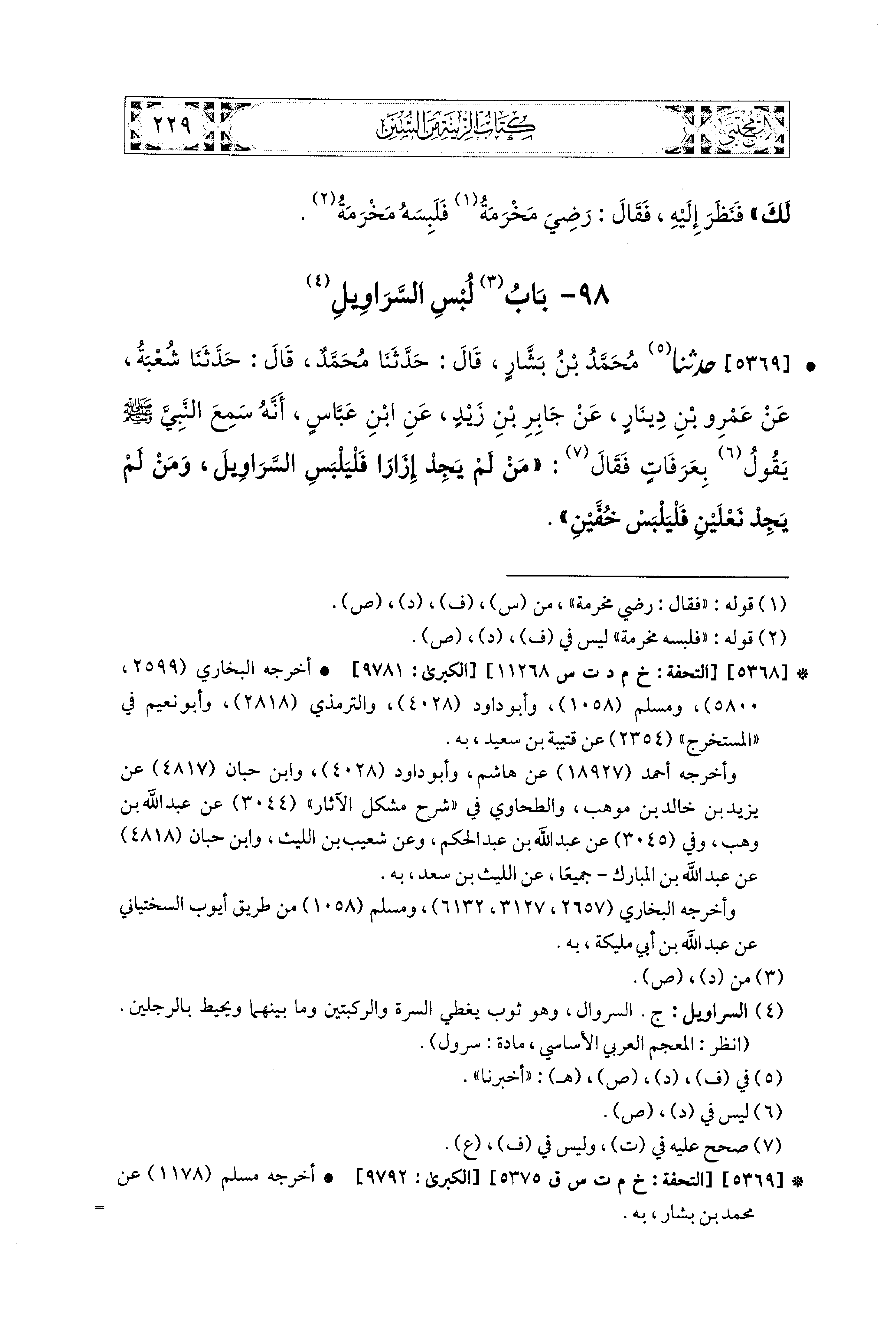 98- باب لُبْسُ السَّرَاوِيلِ.