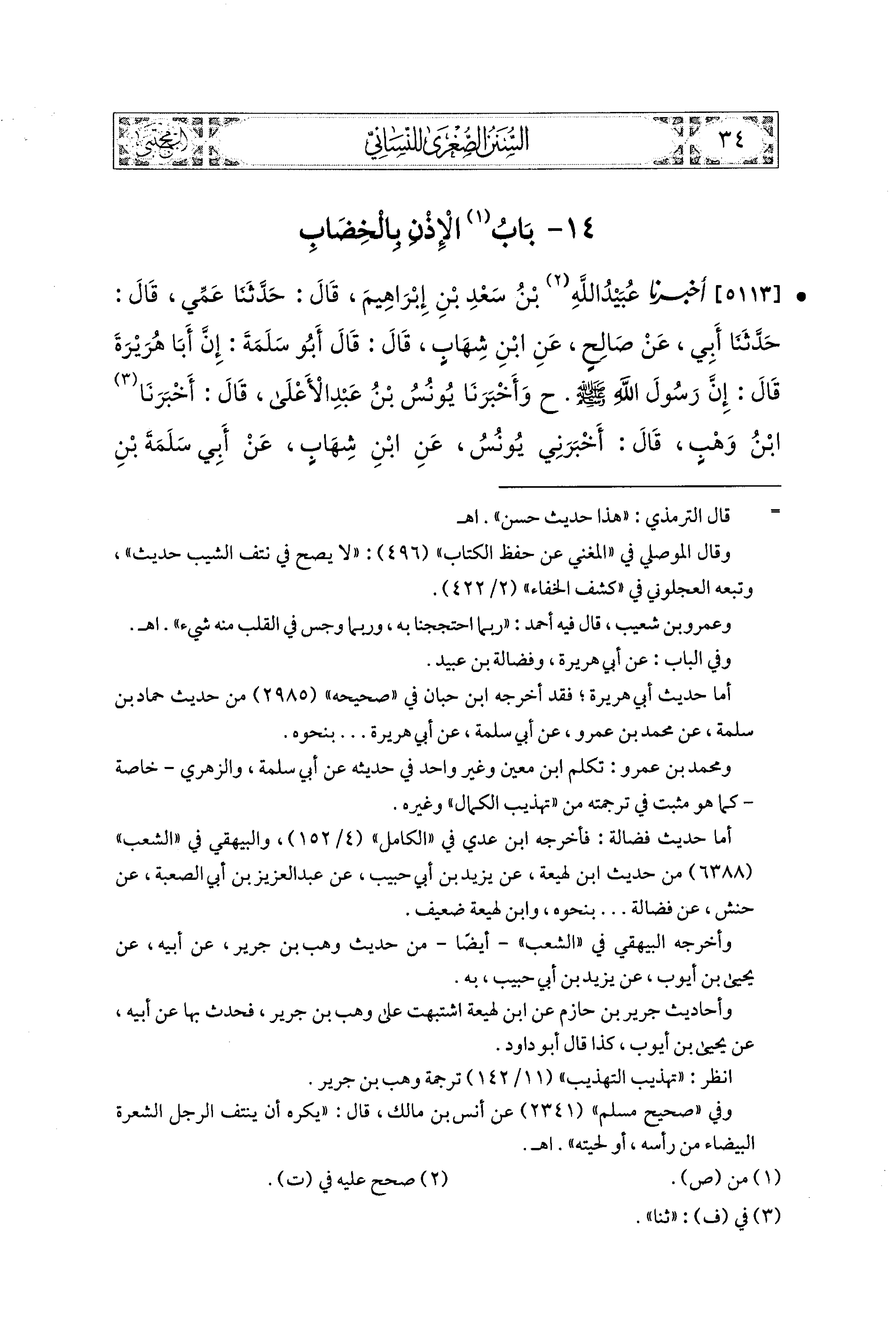 5113- أَخبَرَنا عُبَيدُ اللهِ بنُ سَعْدِ بْنِ إِبراهِيمَ، قال: حَدَّثنا عَمِّي، قال: حَدَّثنا أَبي، عَن صَالِحٍ، عَنِ ابنِ شِهَابٍ، قَالَ: قَالَ أَبو سَلَمَةَ: إِنَّ أَبَا هُرَيْرَةَ قَالَ: إِنَّ رَسُولَ اللهِ صَلى الله عَليه وسَلم (ح) وأَخبَرَنا يُونُسُ بن عَبدِ الأَعلَى، قَالَ: أَخبَرَنا ابنُ وَهْبٍ، قَالَ: أَخْبَرَنِي يُونُسُ، عَنِ ابنِ شِهَابٍ، عَن أَبي سَلَمَةَ بْنِ عَبدِ الرَّحْمَنِ، أَخْبَرَهُ عَن أَبي هُرَيْرَةَ، أَنَّ رَسُولَ اللهِ صَلى الله عَليه وسَلم قَالَ: اليَهُودُ وَالنَّصَارَى لاَ تَصْبُغُ فَخَالِفُوهُمْ.