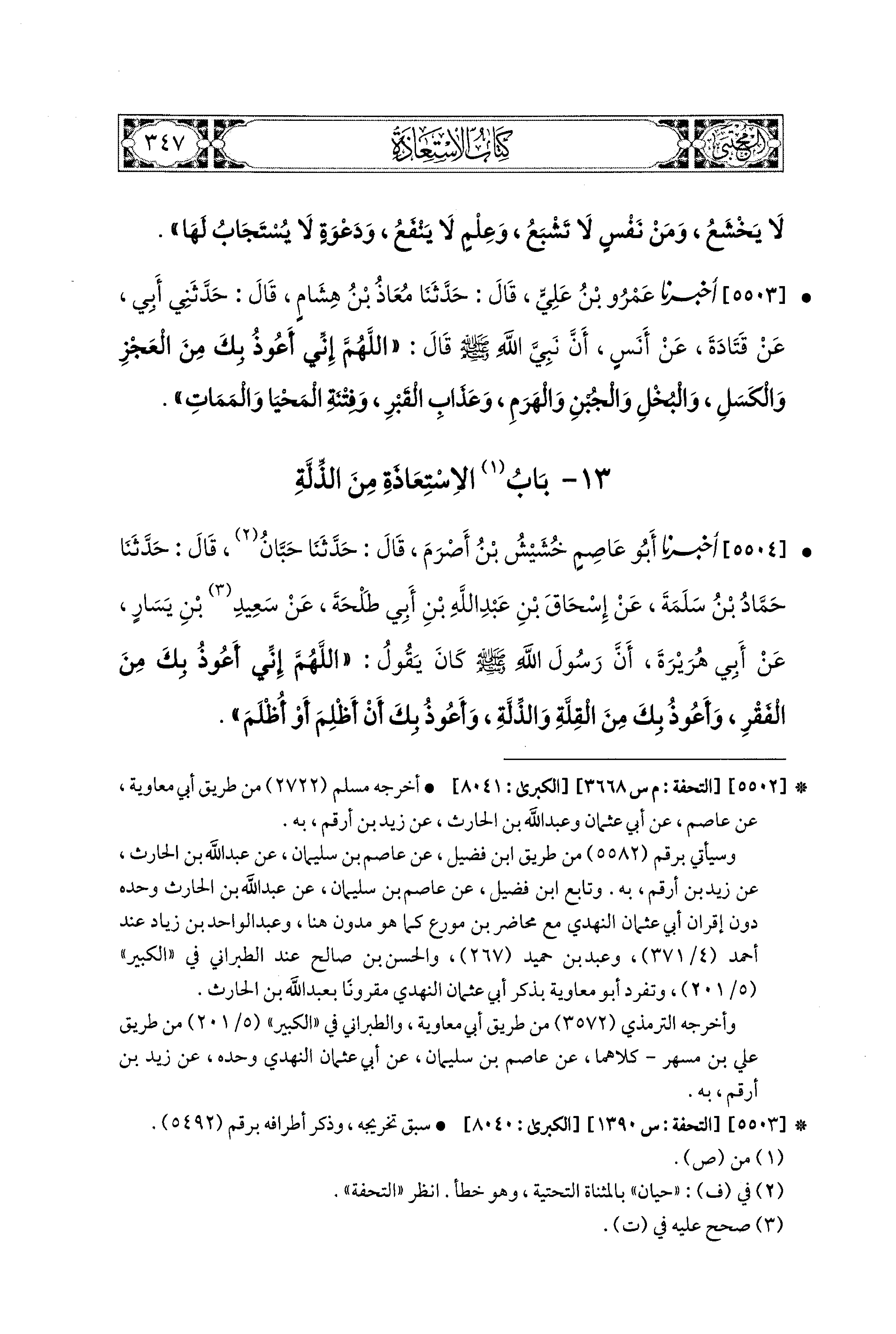 13- باب الاِسْتِعَاذَةُ مِنَ الذِّلَّةِ.