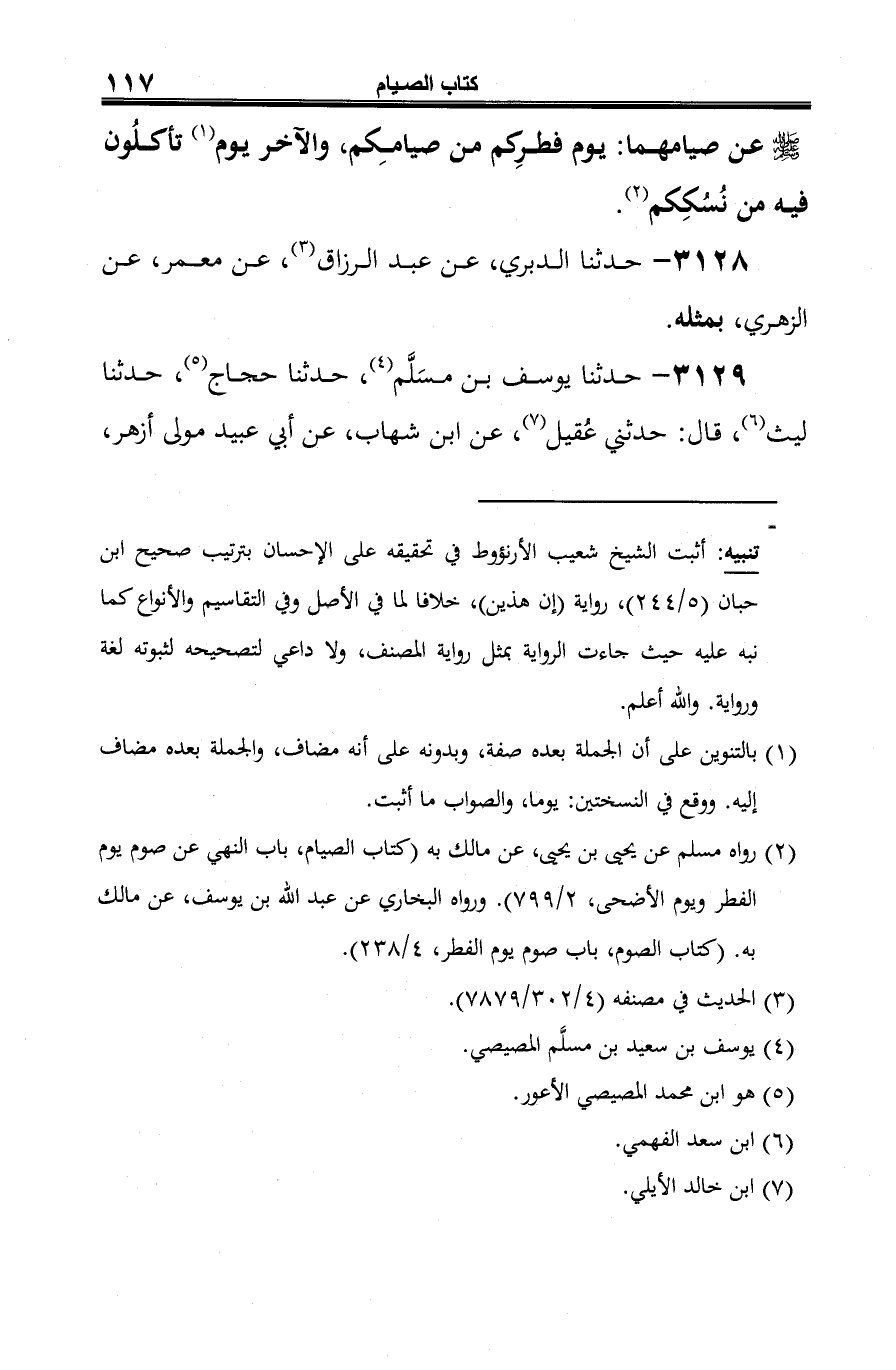 3129 - حدثنا يوسف بن مسَلَّم (¬1)، حدثنا حجاج (¬2)، حدثنا ليث (¬3)، قال: حدثني عُقيل (¬4)، عن ابن شهاب، عن أبي عبيد مولى أزهر،