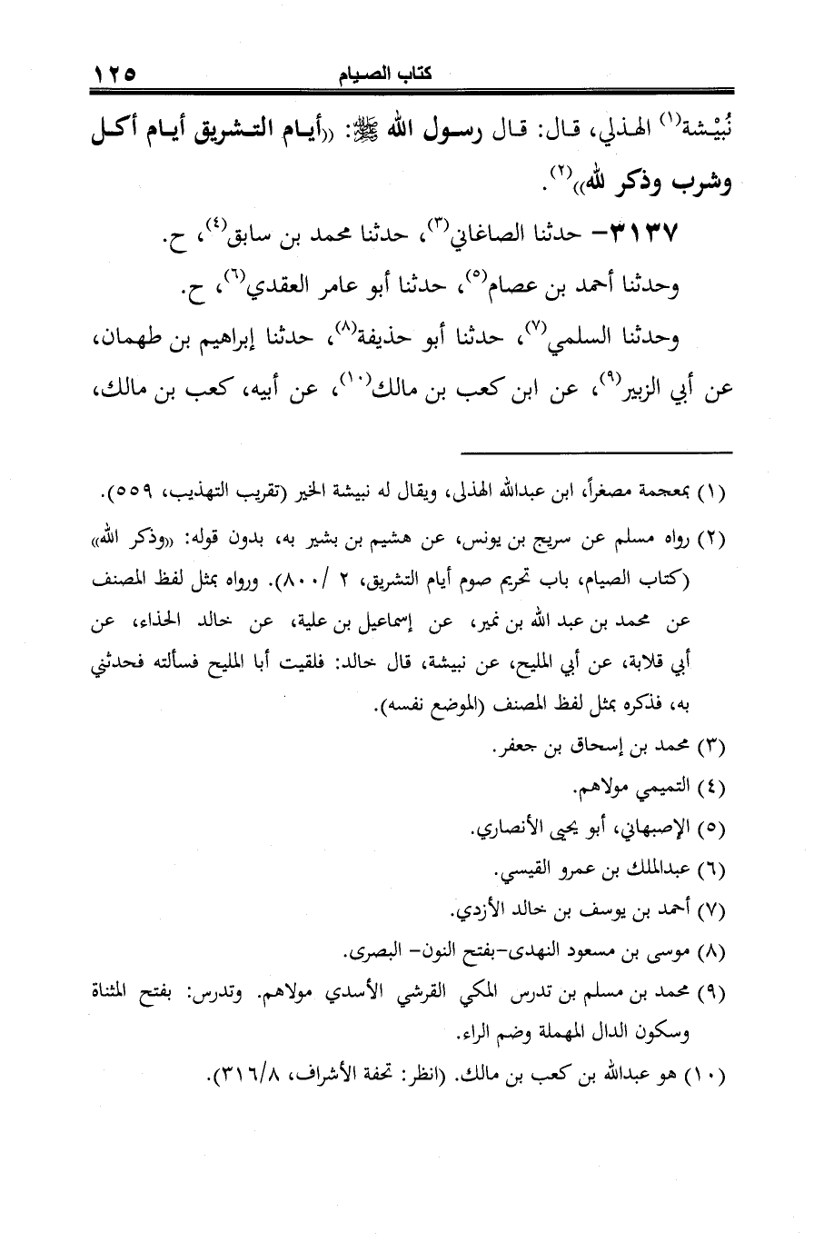 -[126]- أنه حدثه أن رسول الله -صلى الله عليه وسلم- بعثه والأوس بن الحَدَثان (¬9)، في أيام التشريق فناديا: "أن لا يدخل الجنة إلا مؤمن، وأن أيام منى أيام أكل وشرب" (¬10)، وهذا لفظ ابن سابق.