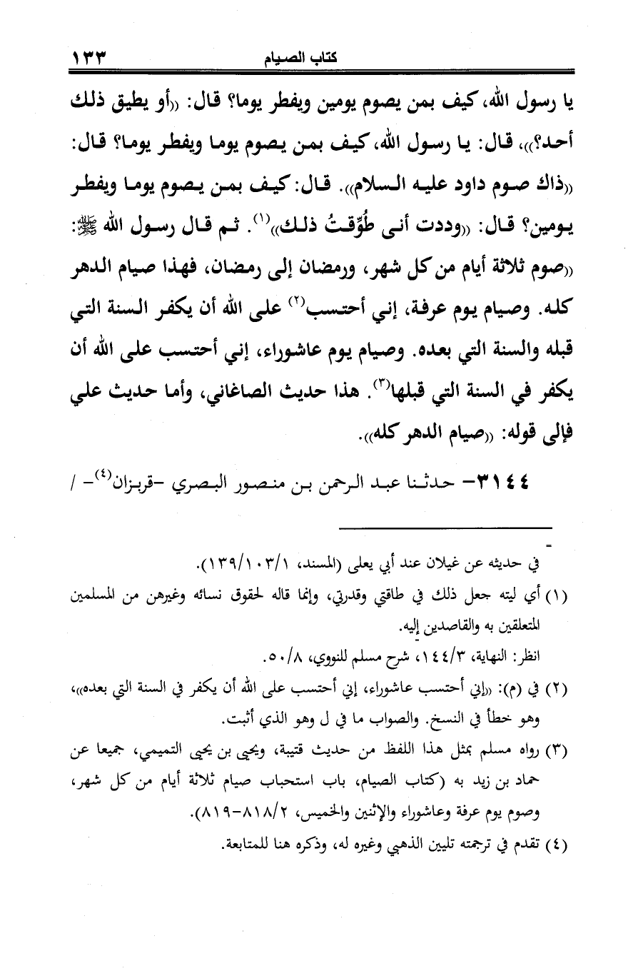 -[134]-، حدثنا عبد الرحمن بن مهدي، حدثنا حماد (¬2) بن زيد، بإسناده في صوم يوم عرفة، ويوم عاشوراء.